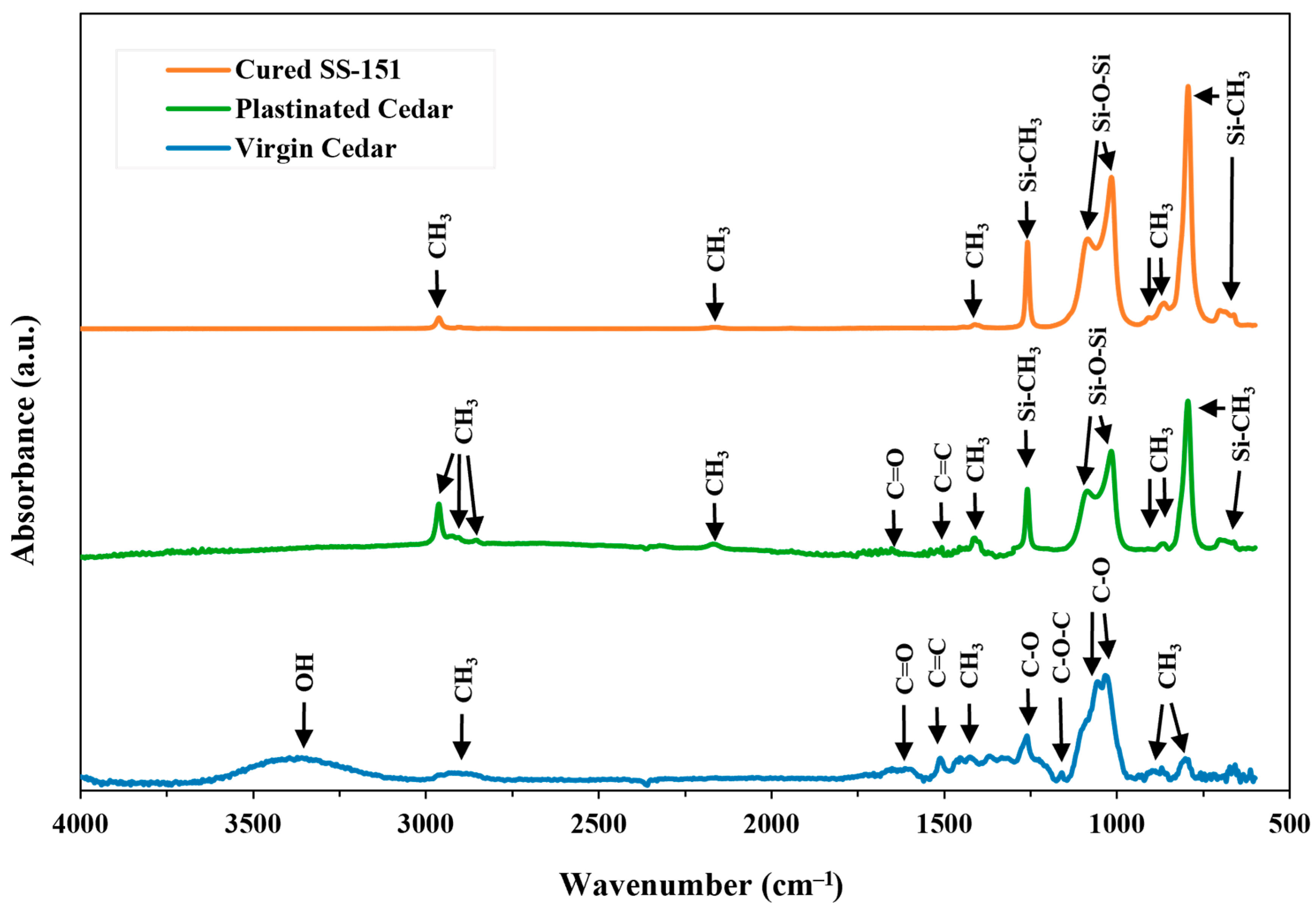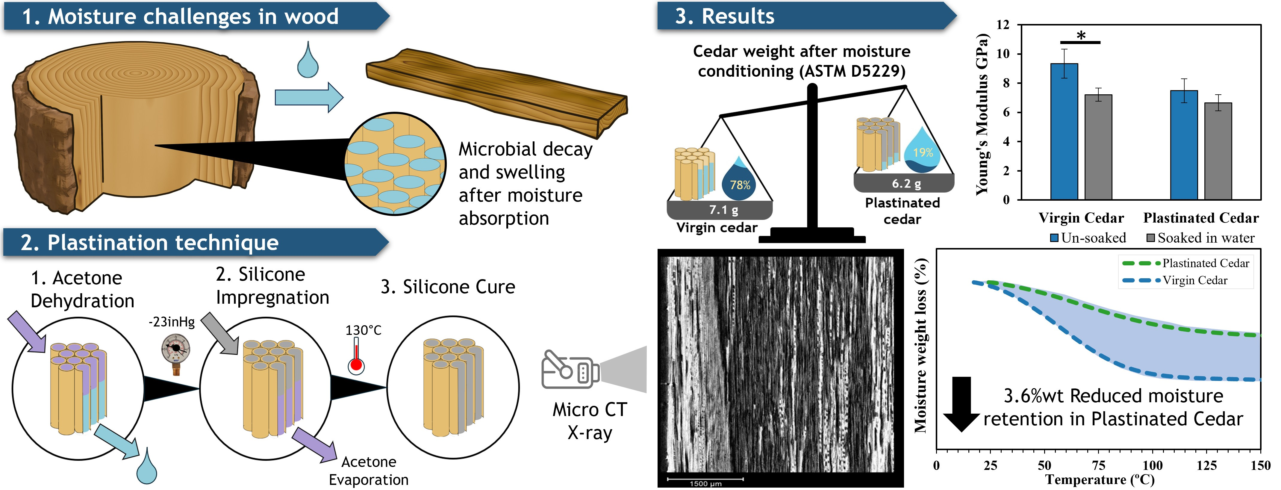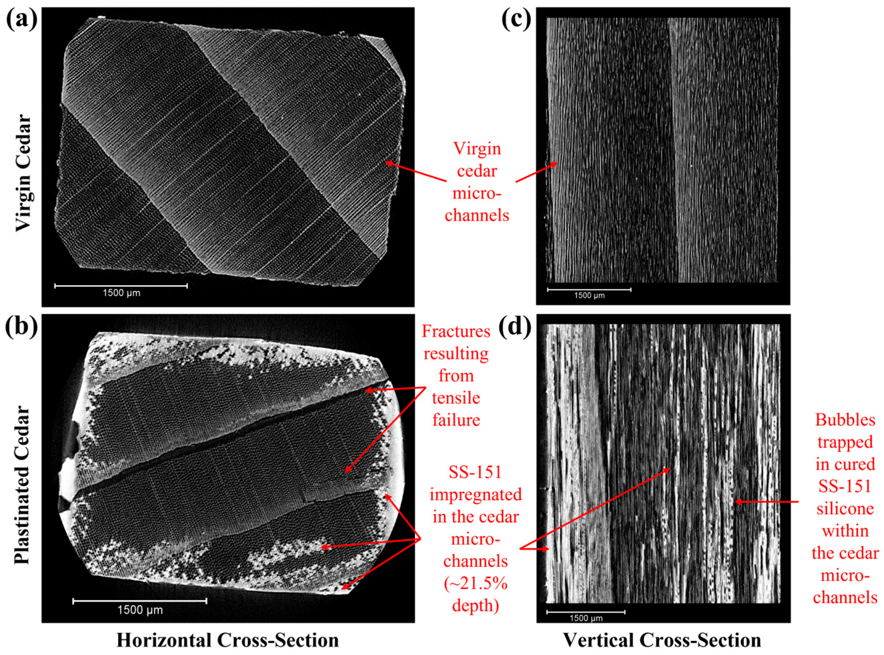 - Upon forced impregnation, WRC specimens were placed in a 130 °C oven for 60 min to cure SS-151 silicone. Once cured and cooled, the excess silicone was scraped off.