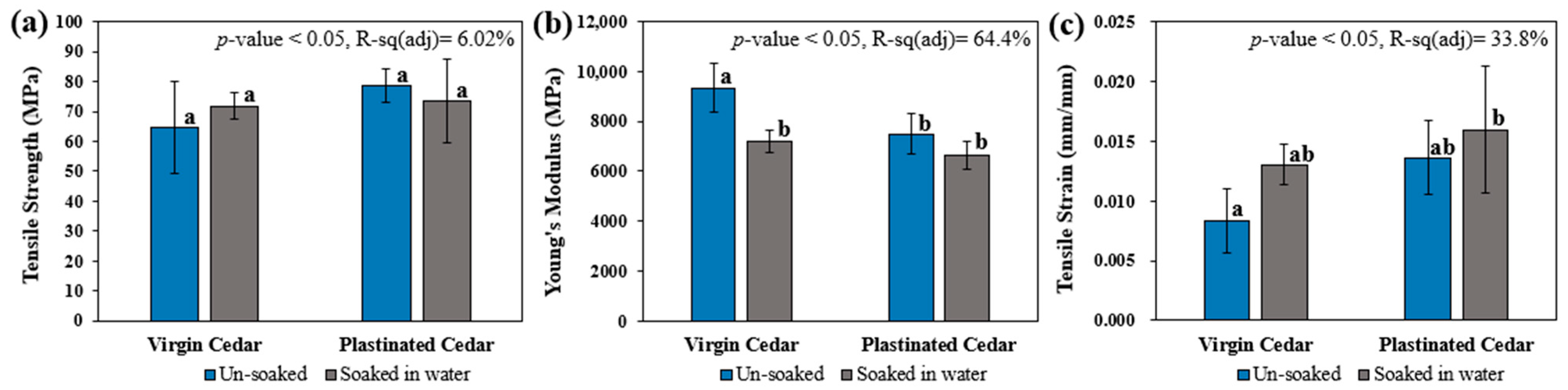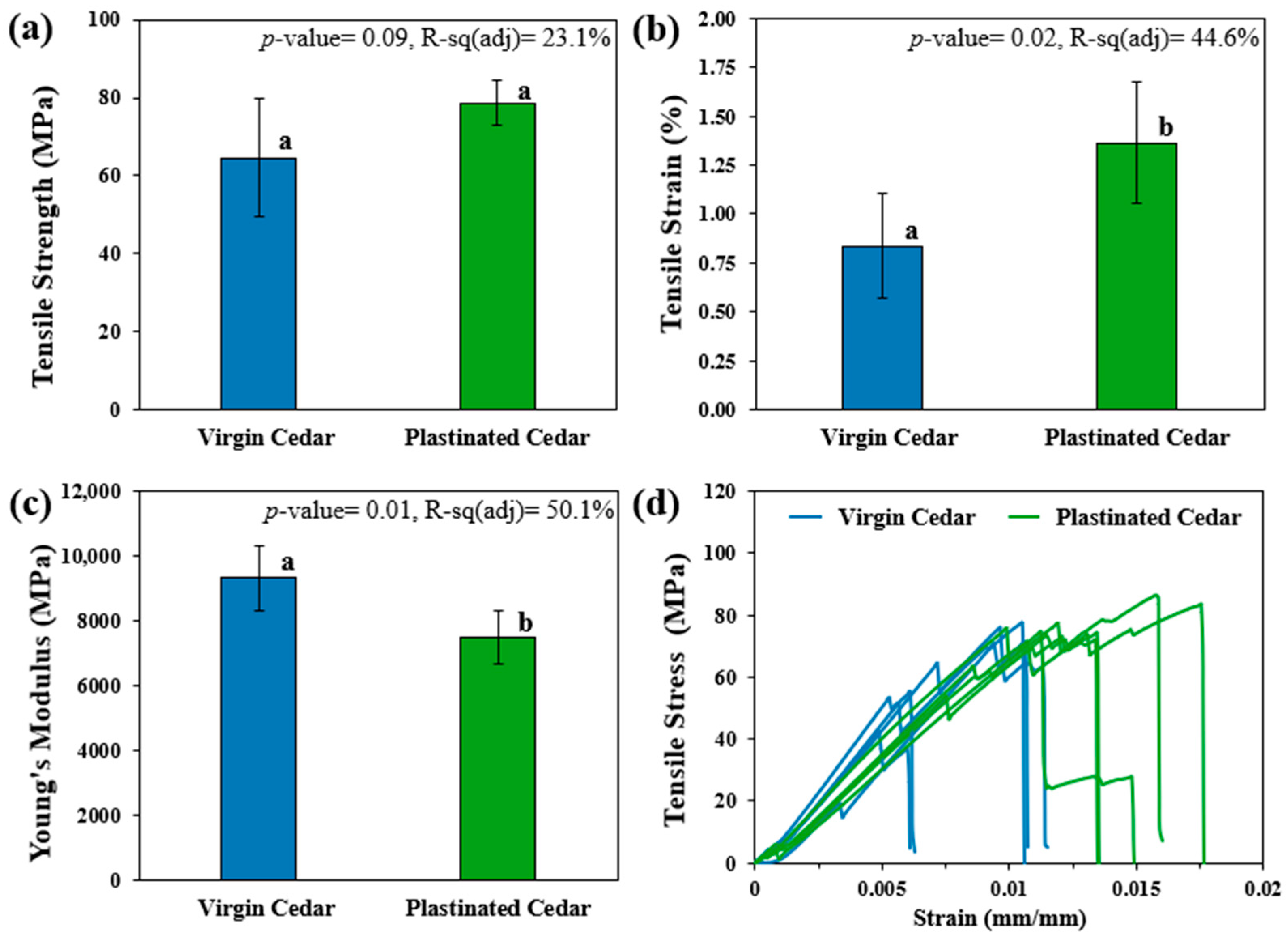 3.2. Effect of Plastination on Mechanical Properties