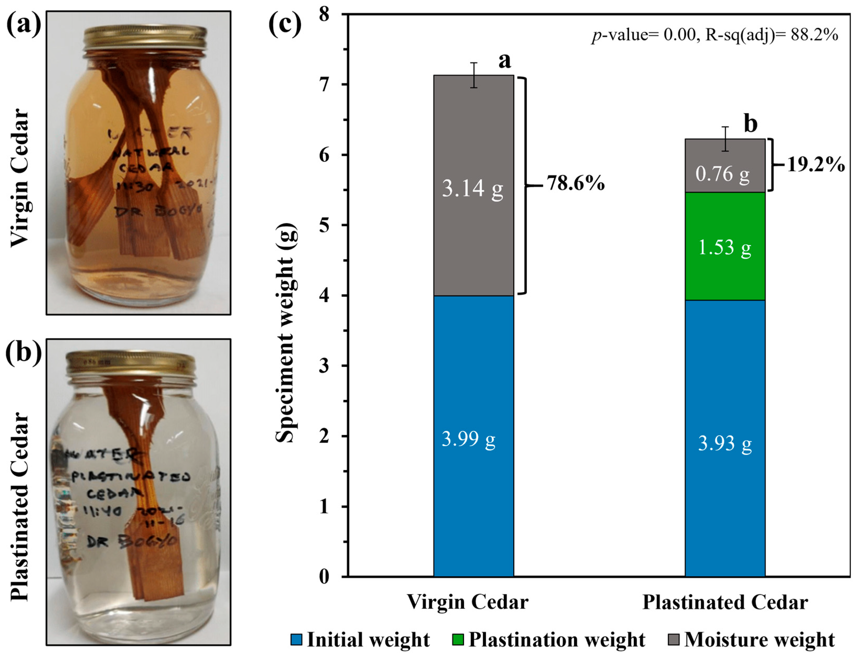 3.3. Effect of Plastination on Environmental Durability