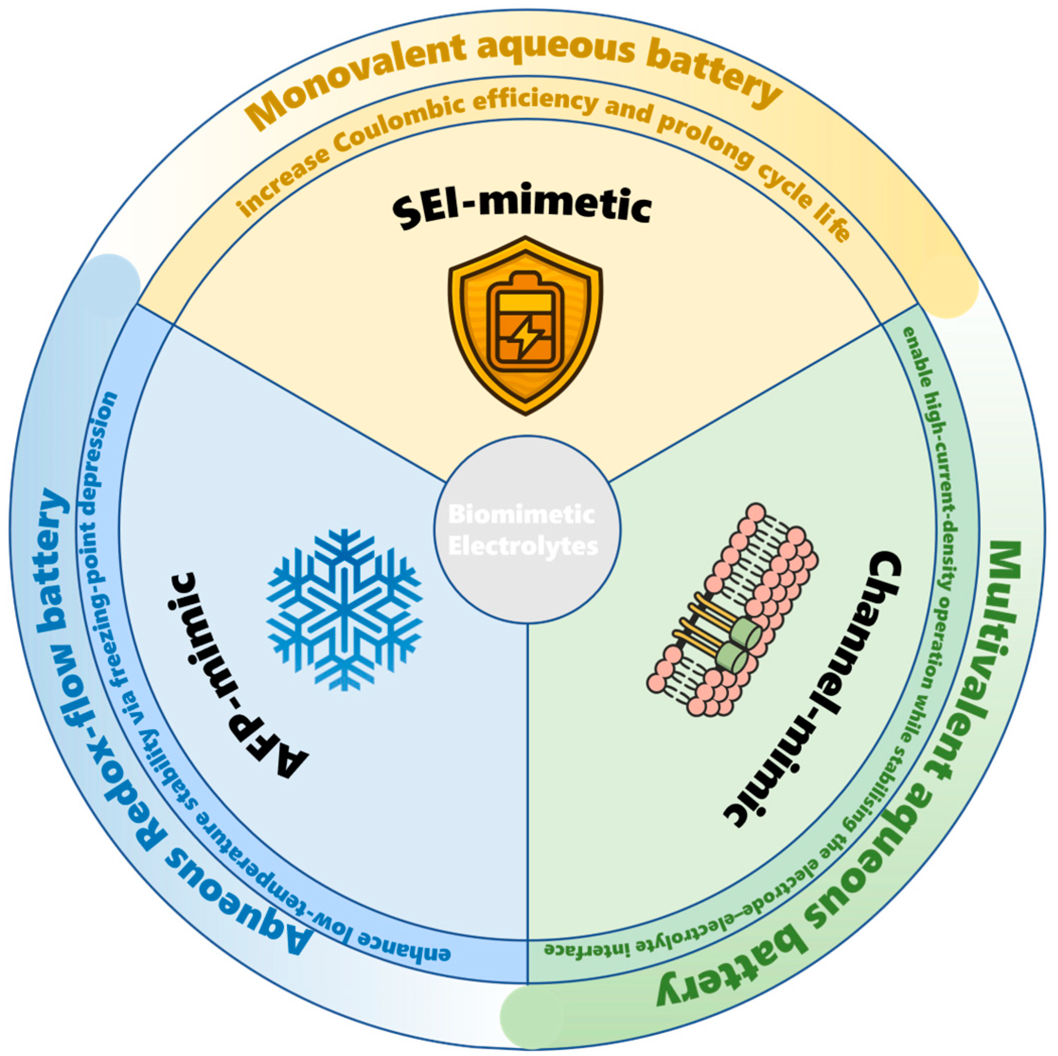 Why is a new synthesis needed now? Since 2020, terms such as “SEI-mimetic”, “AFP (antifreeze-protein)-mimic” and “channel-mimic” have proliferated, but their metrics and mechanistic rationales remain fragmented. A unified framework is therefore required to (i) benchmark disparate strategies, (ii) extract transferable design rules and (iii) highlight cost or scale barriers.