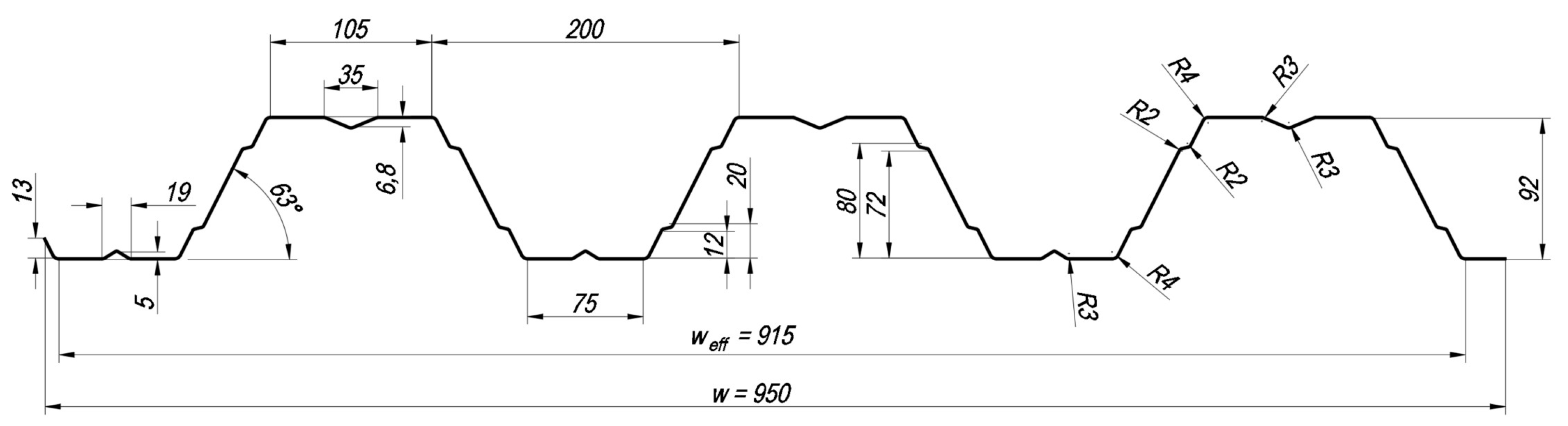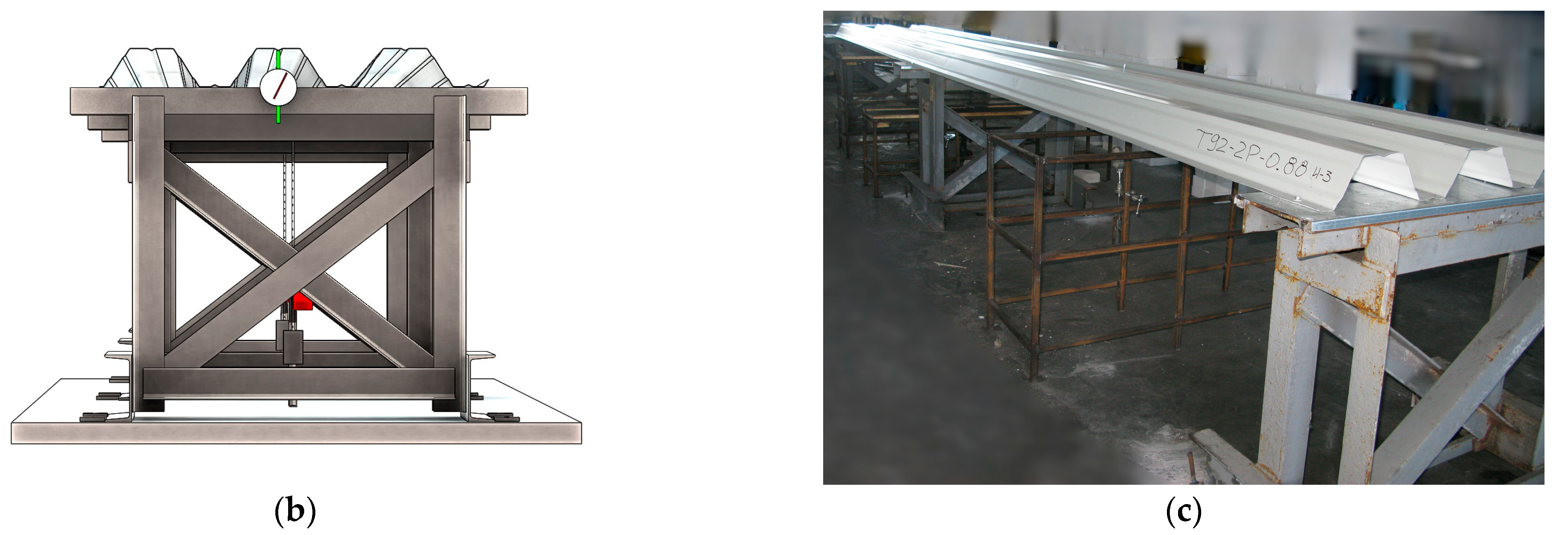 - European Convention for Constructional Steelwork. European Recommendations for Steel Constructions: The Design of Profiled Sheeting; №. 040; ECCS European Convention for Constructional Steelwork: Brussels, Belgium, 1986. [Google Scholar]