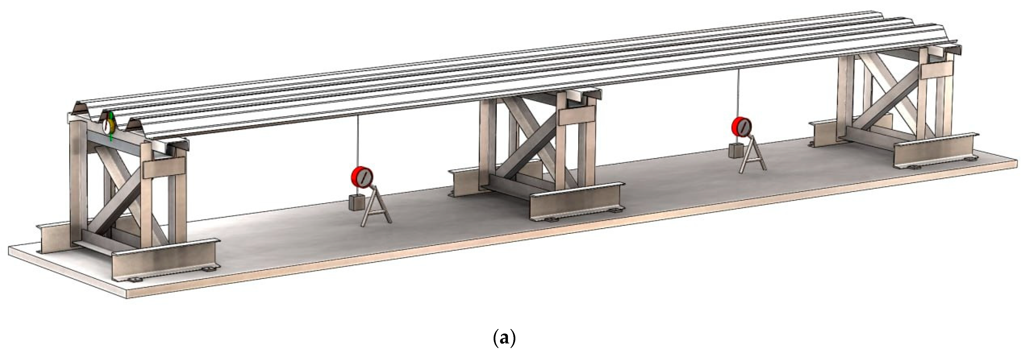 - GRISPE. Test Report of Steel Trapezoidal Sheeting With and Without Embossments and Outward Stiffeners, Annex, 31.10.2014, Deliverable D 1.3 (Rev03. 29. June 2015). Available online: http://www.grispeplus.eu/wp-content/uploads/2017/09/D-1.3-Test-report_annex-23112015.pdf (accessed on 16 September 2025).