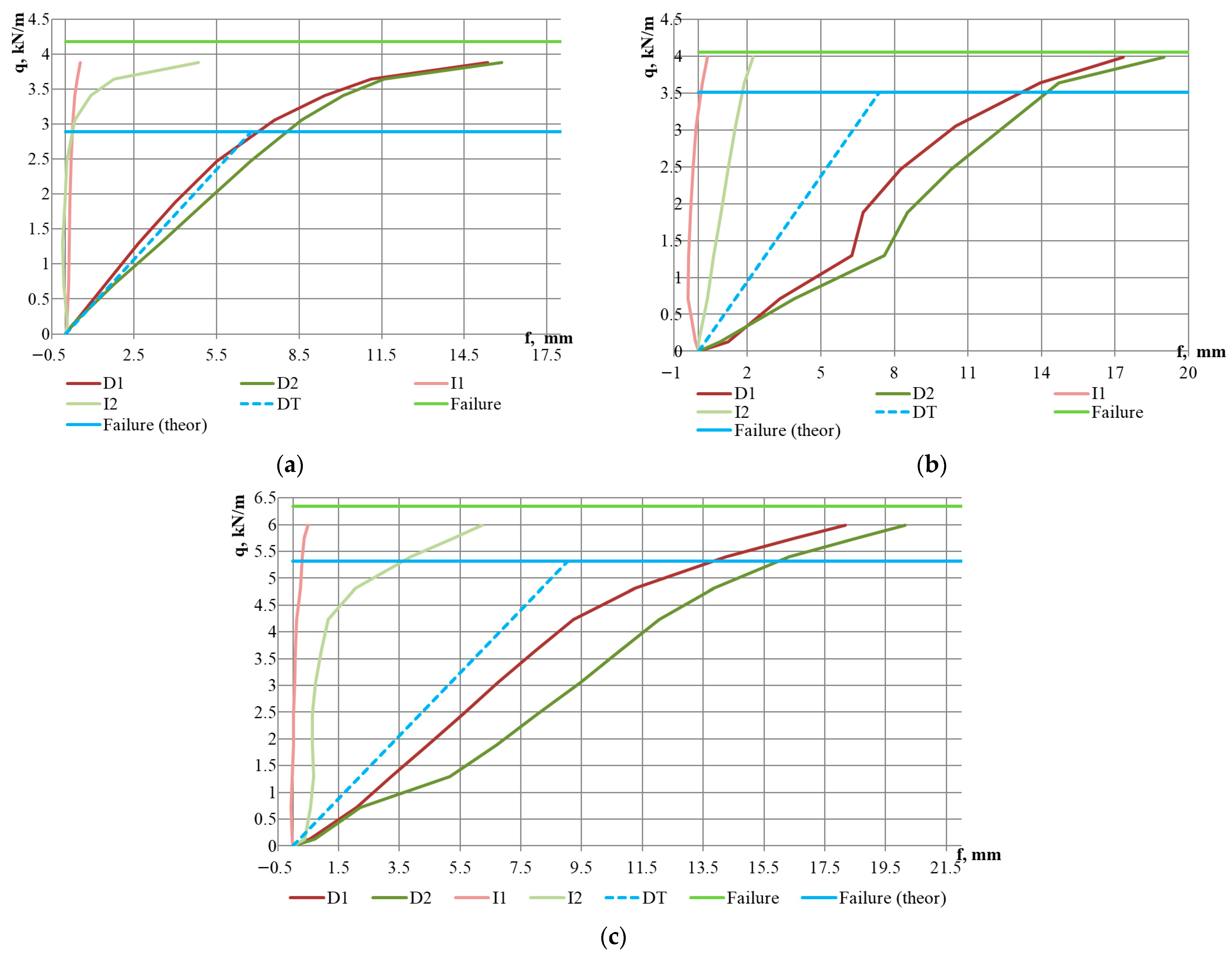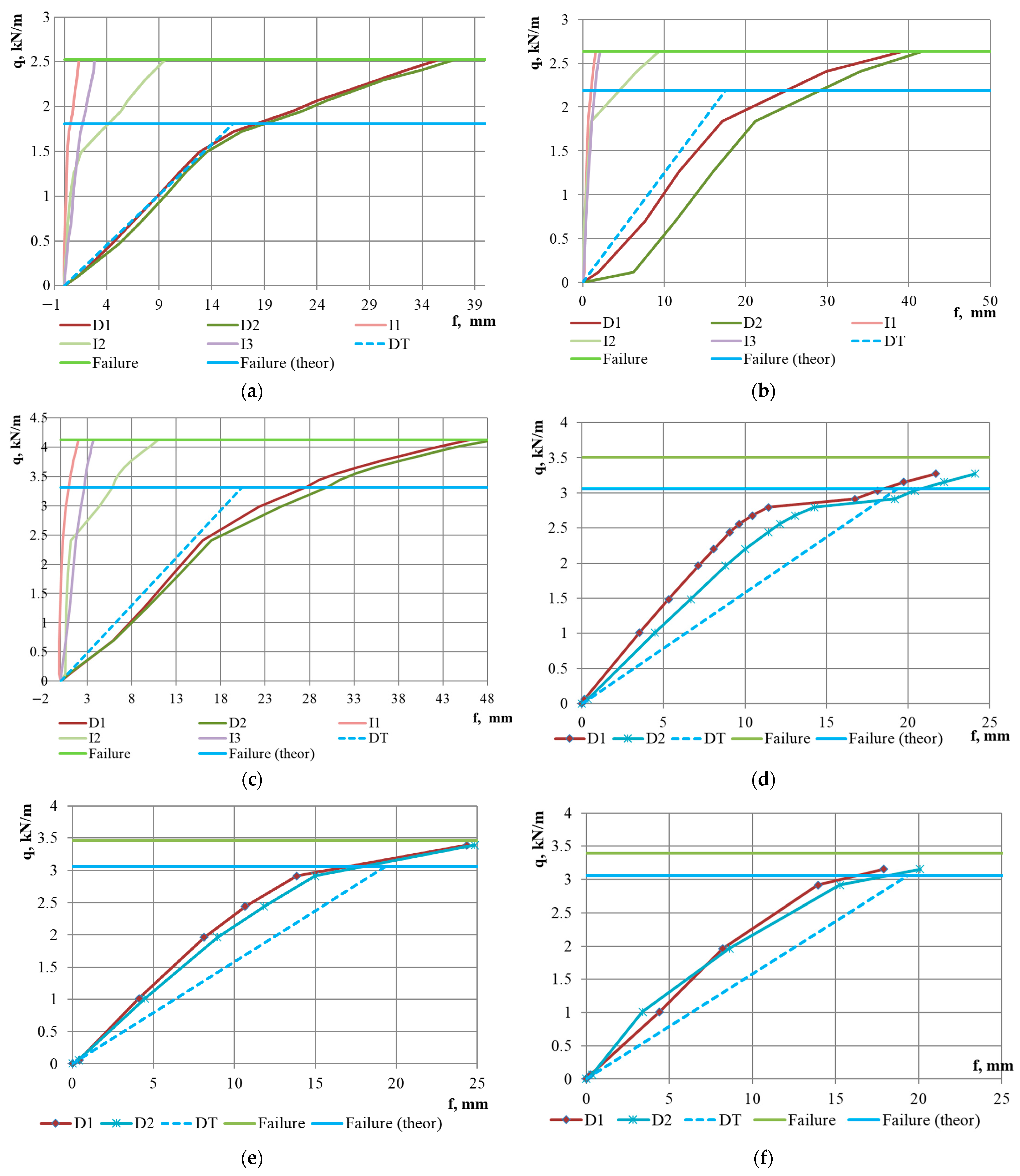 | Specimen | qmax, kN/m | fmax, mm | Specimen | qmax, kN/m | fmax, mm |