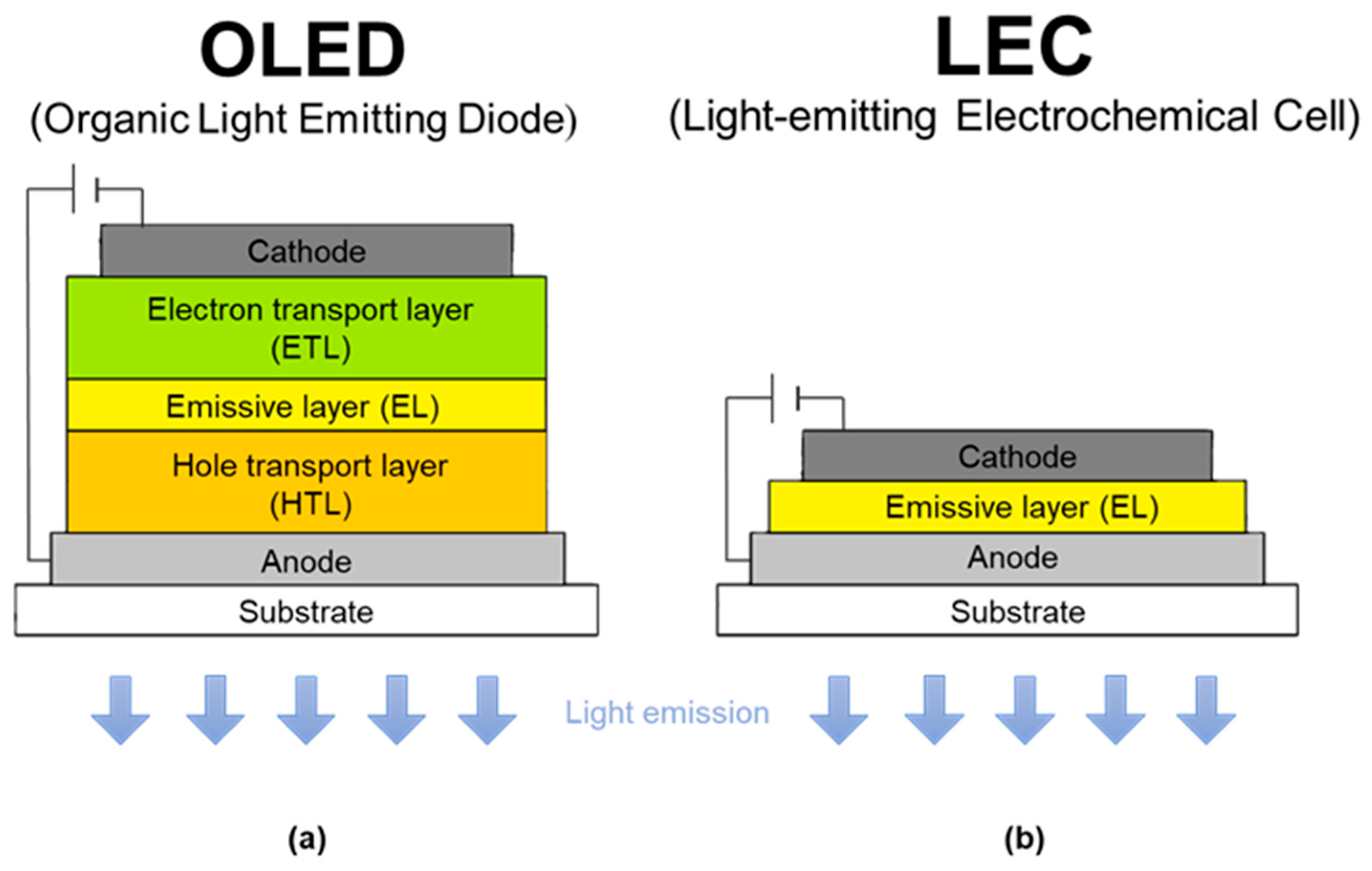- Yang, Z.-P.; Su, H.-C. Recent Advances in Optical Engineering of Light-Emitting Electrochemical Cells. Adv. Funct. Mater. 2020, 30, 1906788. [Google Scholar] [CrossRef]