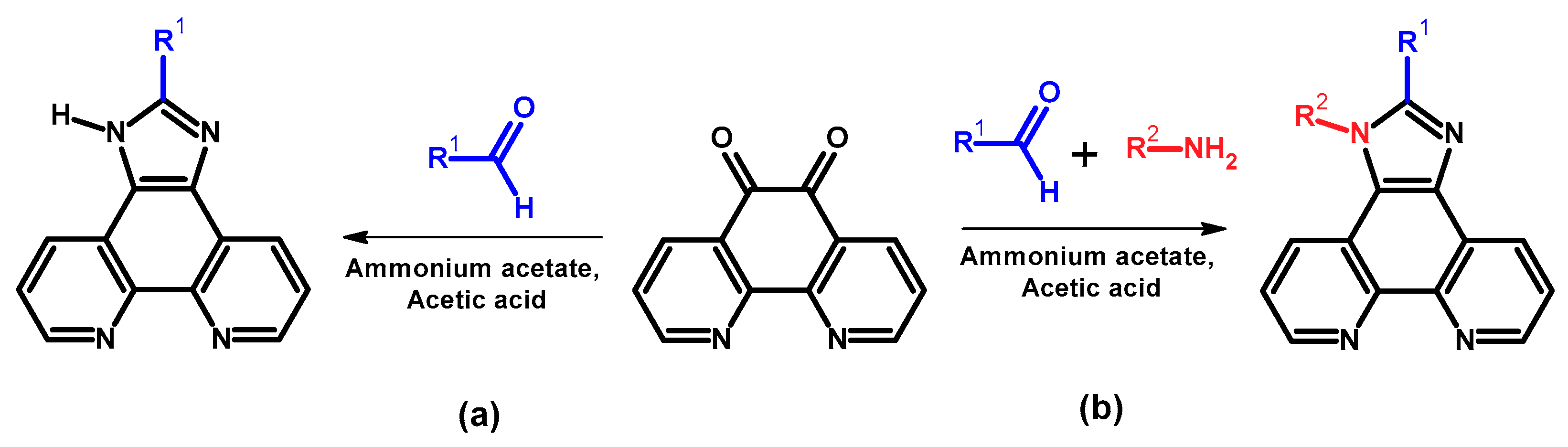 - Kar, B.; Paira, P. Photostimulated Anticancer Activity of Mitochondria Localized Rhenium(I) Tricarbonyl Complexes Bearing 1H-imidazo[4,5-f][1,10]Phenanthroline Ligands Against MDA-MB-231 Cancer Cells. Chem. Eur. J. 2025, 31, e202401720. [Google Scholar] [CrossRef]