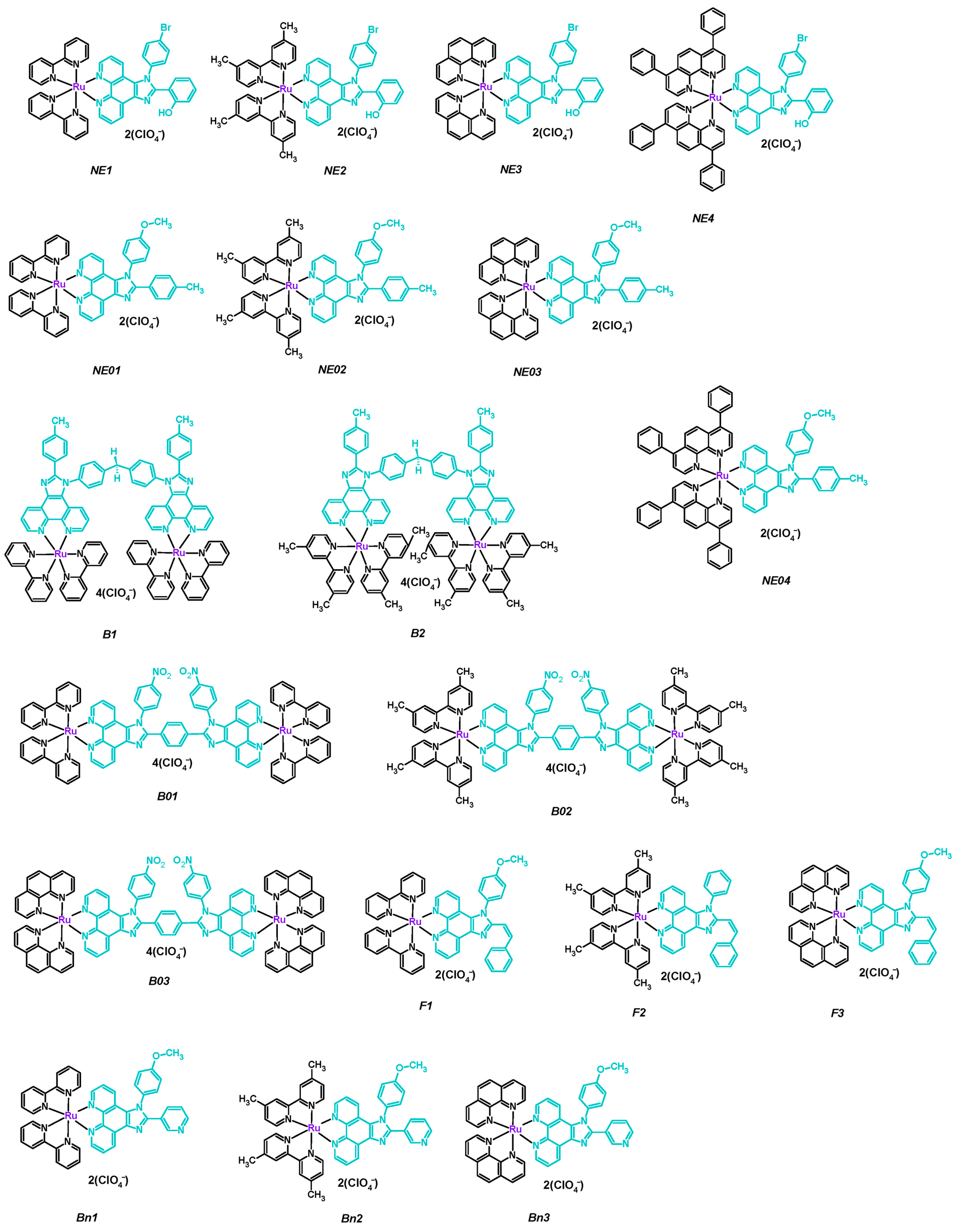 - Nemati Bideh, B.; Shahroosvand, H. Efficient near Infrared Light Emitting Electrochemical Cell (NIR-LEEC) Based on New Binuclear Ruthenium Phenanthroimidazole Exhibiting Desired Charge Carrier Dynamics. Sci. Rep. 2017, 7, 15739. [Google Scholar] [CrossRef]