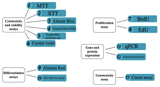 Generally, the effectiveness of biomaterials relies on their interaction with surrounding tissues, so two fundamental properties must be considered [5], bioactivity and biological responsiveness, both of which can be analyzed through various assays as discussed in the following paragraphs.