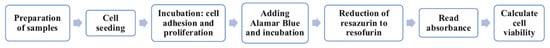 - Longhin, E.M.; El Yamani, N.; Rundén-Pran, E.; Dusinska, M. The alamar blue assay in the context of safety testing of nanomaterials. Front. Toxicol. 2022, 4, 981701. [Google Scholar] [CrossRef]
