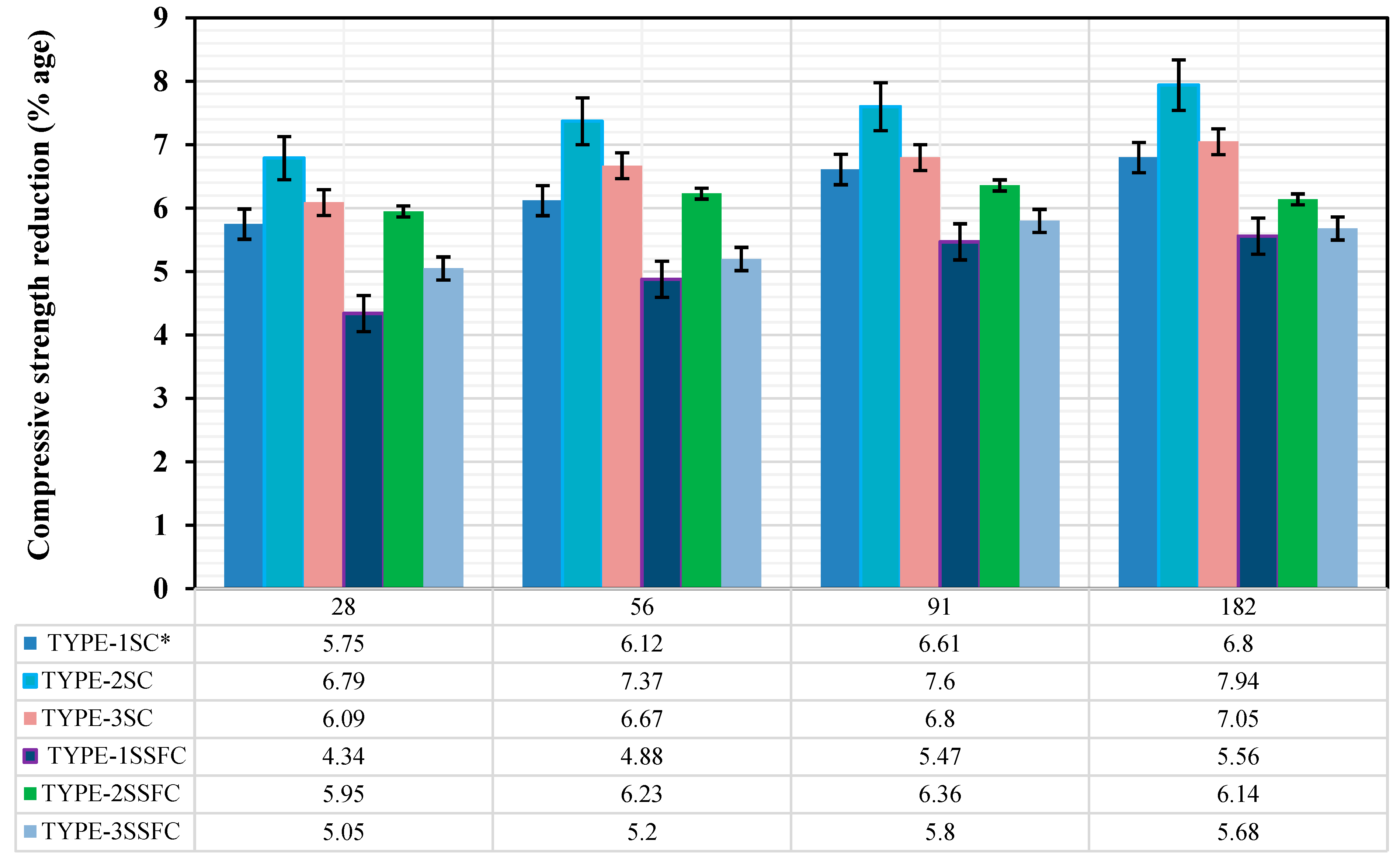 3.2. Performance of the Developed Sand Concrete Against Sulfuric Acid