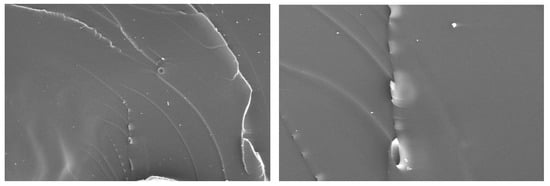 In butt joint tensile and shear tests, Adhesive III’s strength is intermediate (31.3 MPa tensile, 20.0 MPa shear), lower than Adhesive I but higher than Adhesive II. Normal strength consistently exceeds shear strength by 33–107% across all adhesives, attributed to stress concentration at interface edges under shear loading, which accelerates crack initiation, while normal loading distributes stress more uniformly (Figure 17). Fracture surface analysis (Figure 18 and Figure 19) reveals a mixed failure mode under normal loading for Adhesive III, while shear loading results in exclusively cohesive failure, indicating sufficient interfacial bonding strength to withstand shear loads.