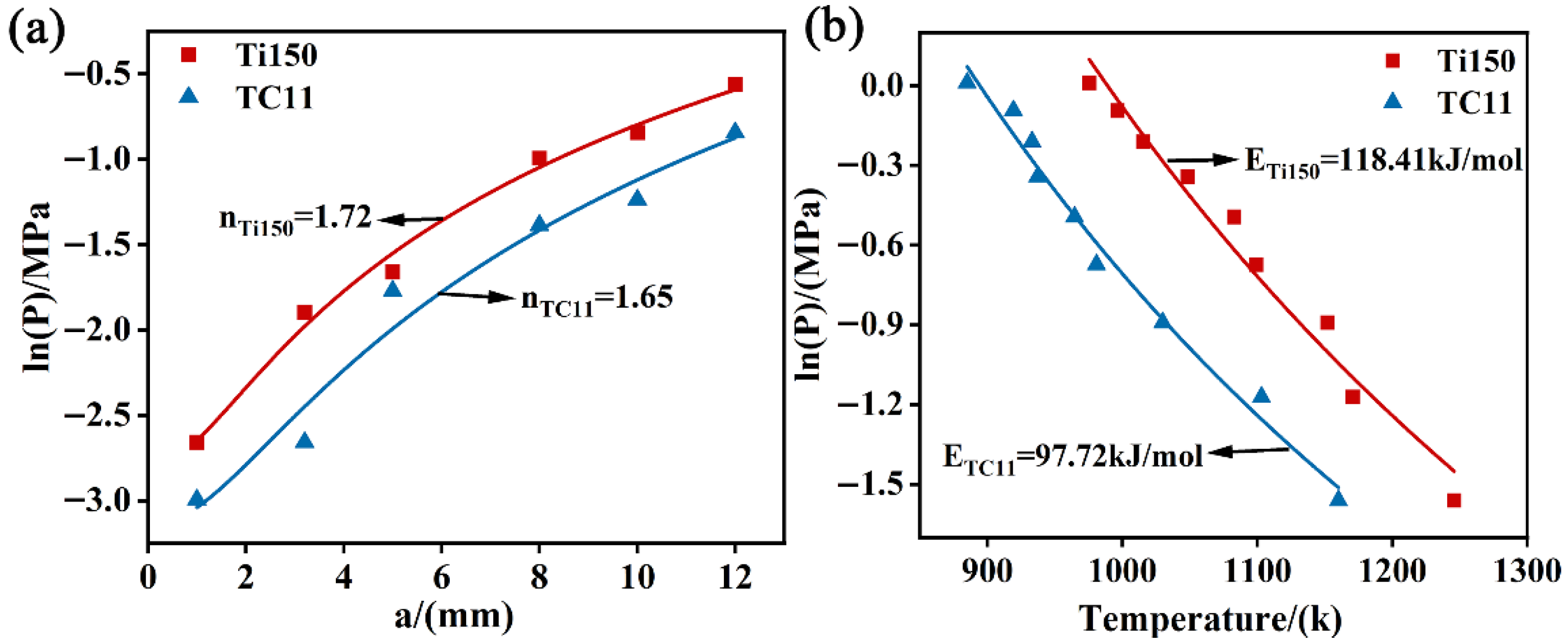 - The thermodynamic parameters of Ti150 and TC11 were obtained based on the ignition thermodynamic model. The ignition activation energy of the Ti150 alloy (118.41 kJ/mol) exceeds that of the TC11 alloy (97.72 kJ/mol), suggesting that the Ti150 alloy exhibits better combustion resistance. The higher burning velocity of Ti150 compared to TC11 is mainly attributed to two factors: firstly, the Ti150 alloy has a higher O content in the melting zone, which leads to increased reaction exotherm; secondly, the enrichment of Zr at the solid–liquid interface in Ti150 leads to a lower melting point. In contrast, Mo in TC11 exerts the opposite effect. The combined effect of these factors accelerates the burning velocity of Ti150 relative to TC11.