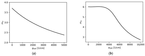 Let us now analyse the effect of varying the gain and absorption parameters, which were previously assumed to be constant. Throughout this analysis, and are assumed to be the same as at the beginning of Section 4.2 (), while is fixed at 1.4 µm.