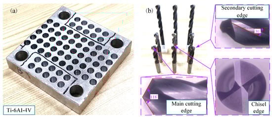 Experimental workpiece and tool: (a) Ti-6AI-4V workpiece, (b) Φ6 twist drill.