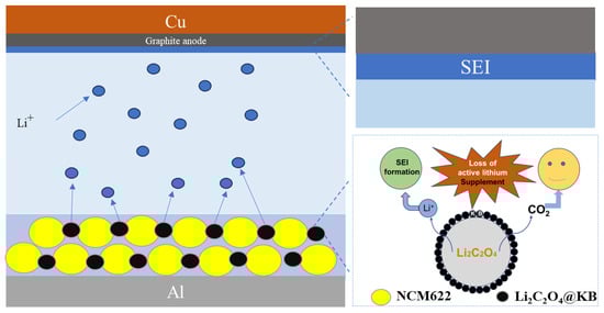 Lithium-ion compensation process and mechanism of Li2C2O4@KB composite.