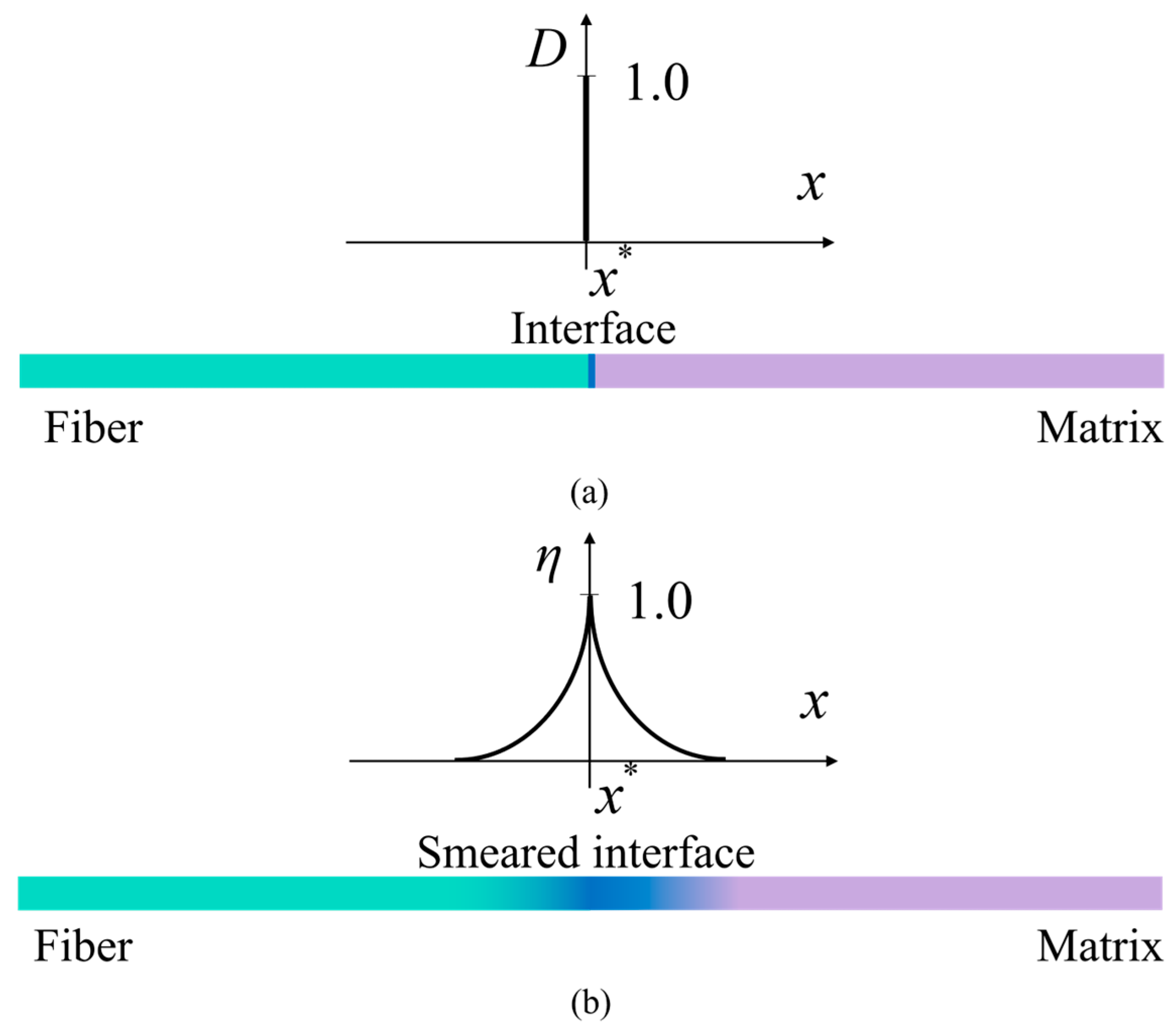 2.2. An Auxiliary Phase Field for Fiber-Matrix Interface