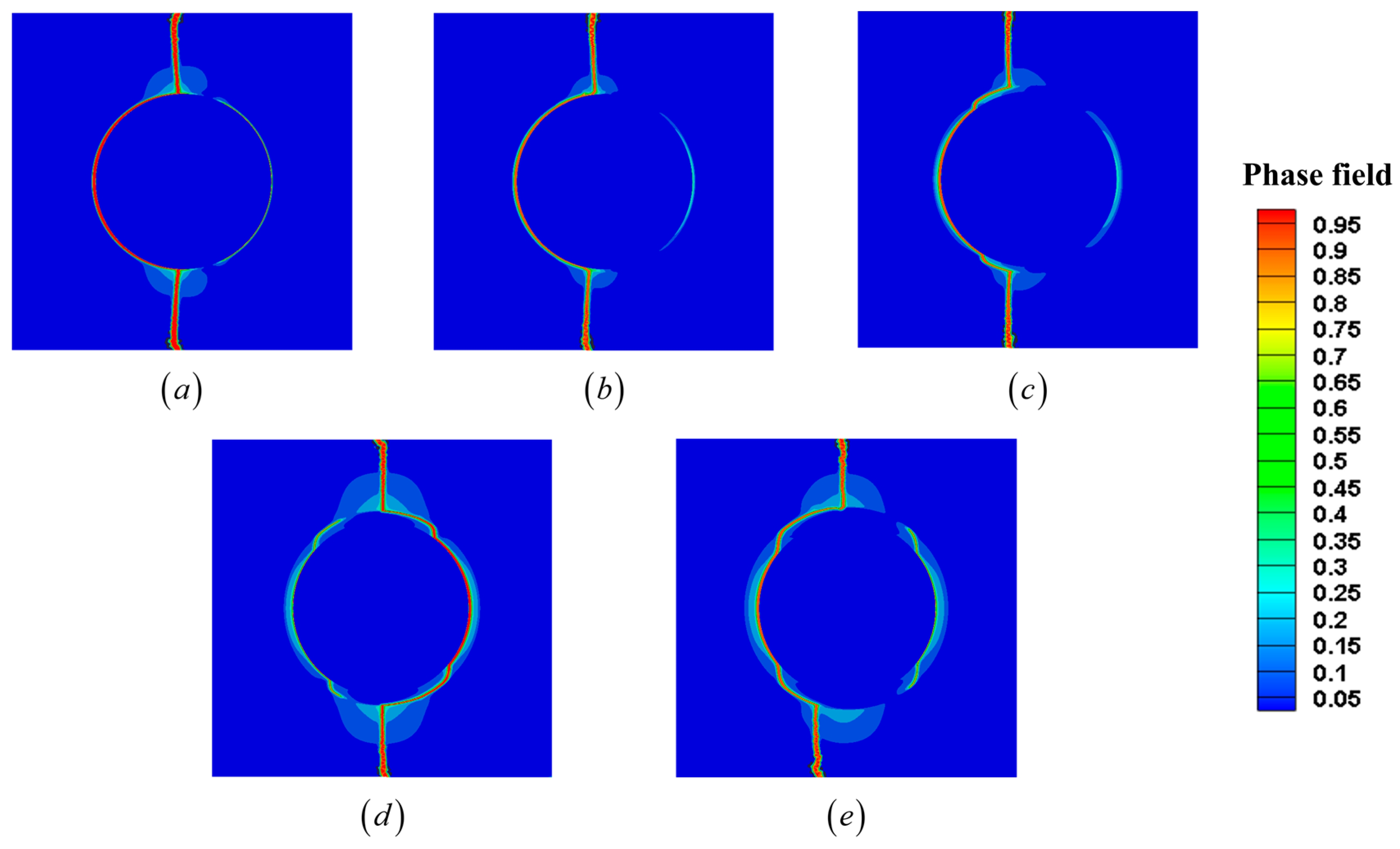 - Zhang, P.; Hu, X.; Yang, S.; Yao, W. Modelling progressive failure in multi-phase materials using a phase field method. Eng. Fract. Mech. 2019, 209, 105–124. [Google Scholar] [CrossRef]