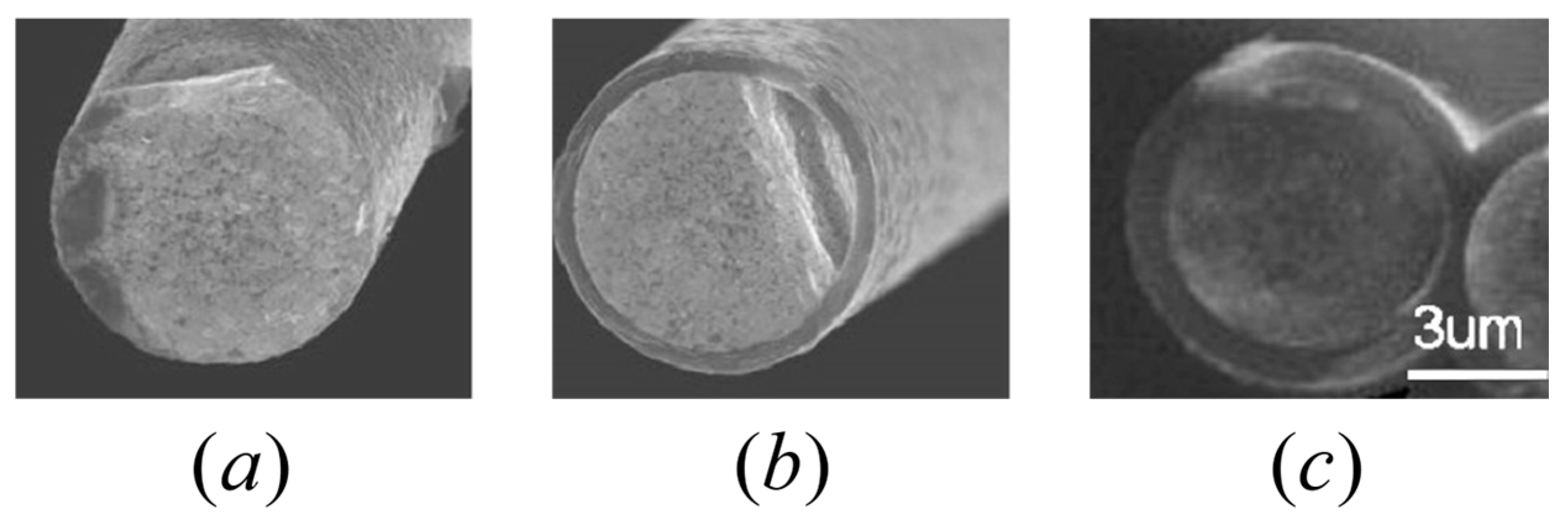 - Morishita, K.; Ochiai, S.; Okuda, H.; Inshikawa, T.; Sato, M.; Inoue, T. Fracture Toughness of a Crystalline Silicon Carbide Fiber (Tyranno-SA3®). J. Am. Ceram. Soc. 2006, 89, 2571–2576. [Google Scholar] [CrossRef]