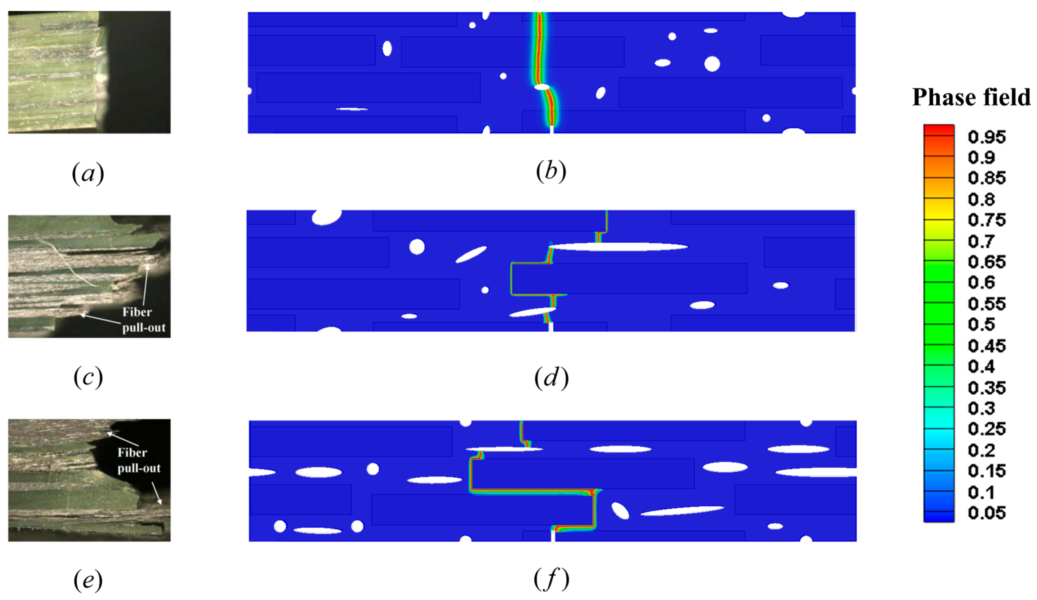 - Hu, X.; Zhang, P.; Yao, W. Phase field modelling of microscopic failure in composite laminates. J. Compos. Mater. 2021, 55, 1853–1865. [Google Scholar] [CrossRef]