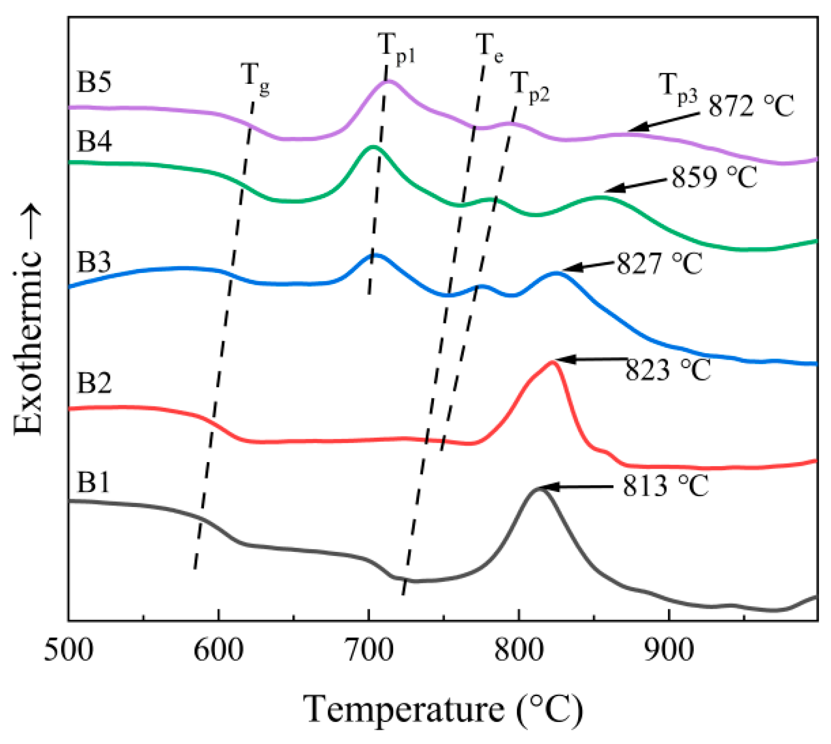 3 content. The exothermic peak in DSC represents the crystallization peak, and its associated temperature is the crystallization temperature (T