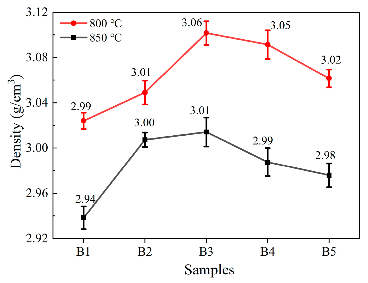 3 contents after sintering at 800 °C and 850 °C for 10 min. As the Al