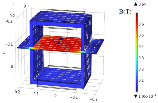 Figure 3. The simulation results indicate that, within the central region of 120 mm × 140 mm, the deviations of the magnetic flux density