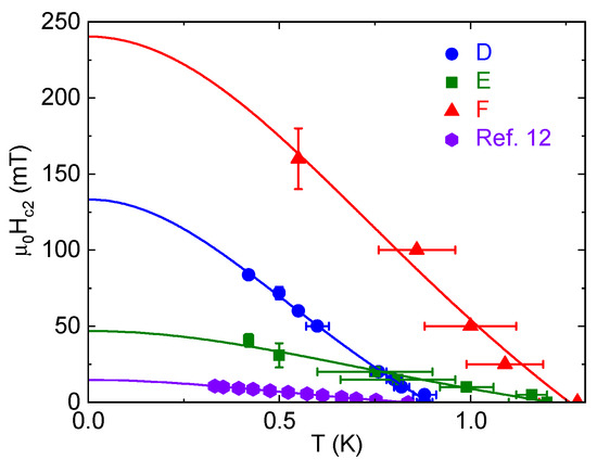 - Rosa, P.F.; Weiland, A.; Fender, S.S.; Scott, B.L.; Ronning, F.; Thompson, J.D.; Bauer, E.D.; Thomas, S.M. Single thermodynamic transition at 2 K in superconducting UTe2 single crystals. Commun. Mater. 2022, 3, 33. [Google Scholar] [CrossRef]