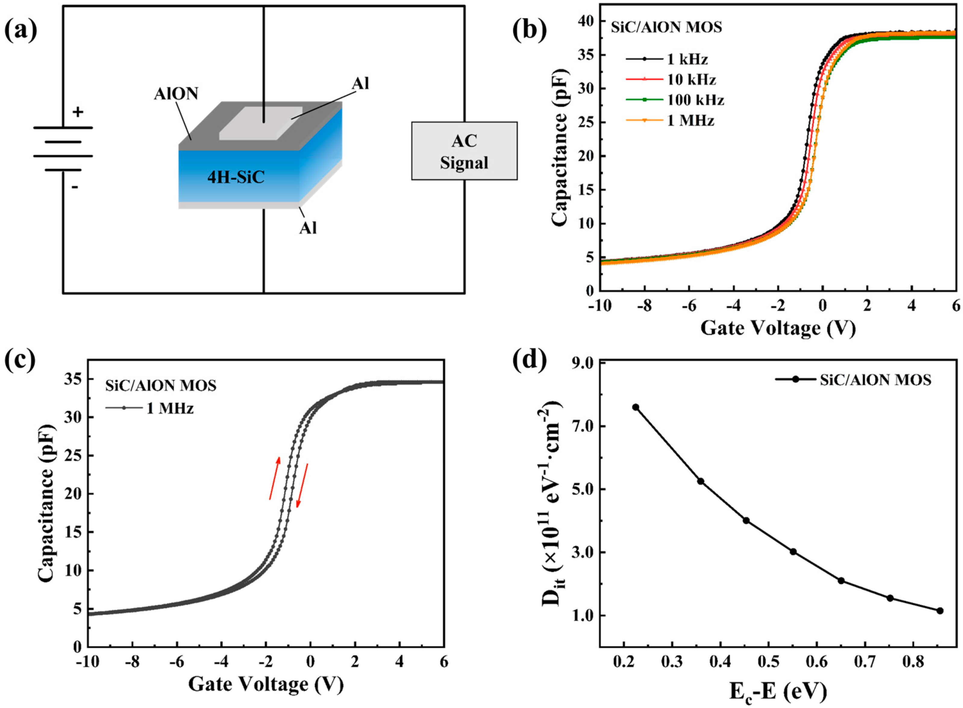 APA StyleBai, Z., Ding, C., Guo, Y., Luo, M., Zhou, Z., Gu, L., Zhang, Q., & Ma, H. (2025). Improvement of Physical and Electrical Characteristics in 4H-SiC MOS Capacitors Using AlON Thin Films Fabricated via Plasma-Enhanced Atomic Layer Deposition. Materials, 18(19), 4531. https://doi.org/10.3390/ma18194531