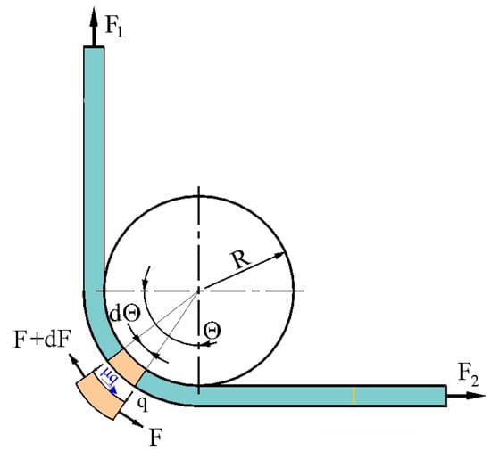 Taking into account an angle of wrap equal to 90°, Equation (3) gives