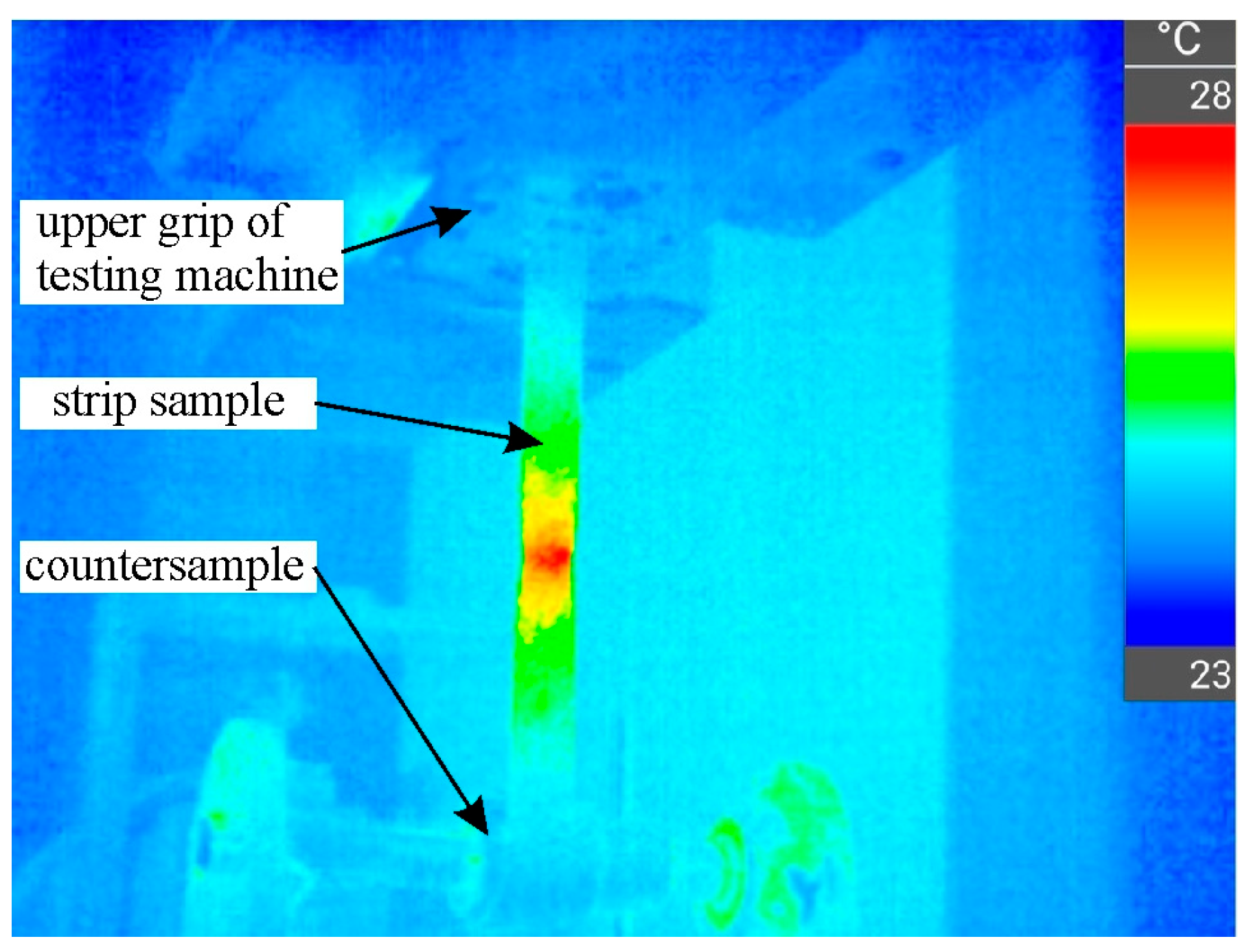 - Two pressure peaks were observed along the length of the contact zone, both longitudinally and transverse to the stretching direction. This is related to the effect of bending the material around the cylindrical countersample and the simultaneous stretching of the sample.