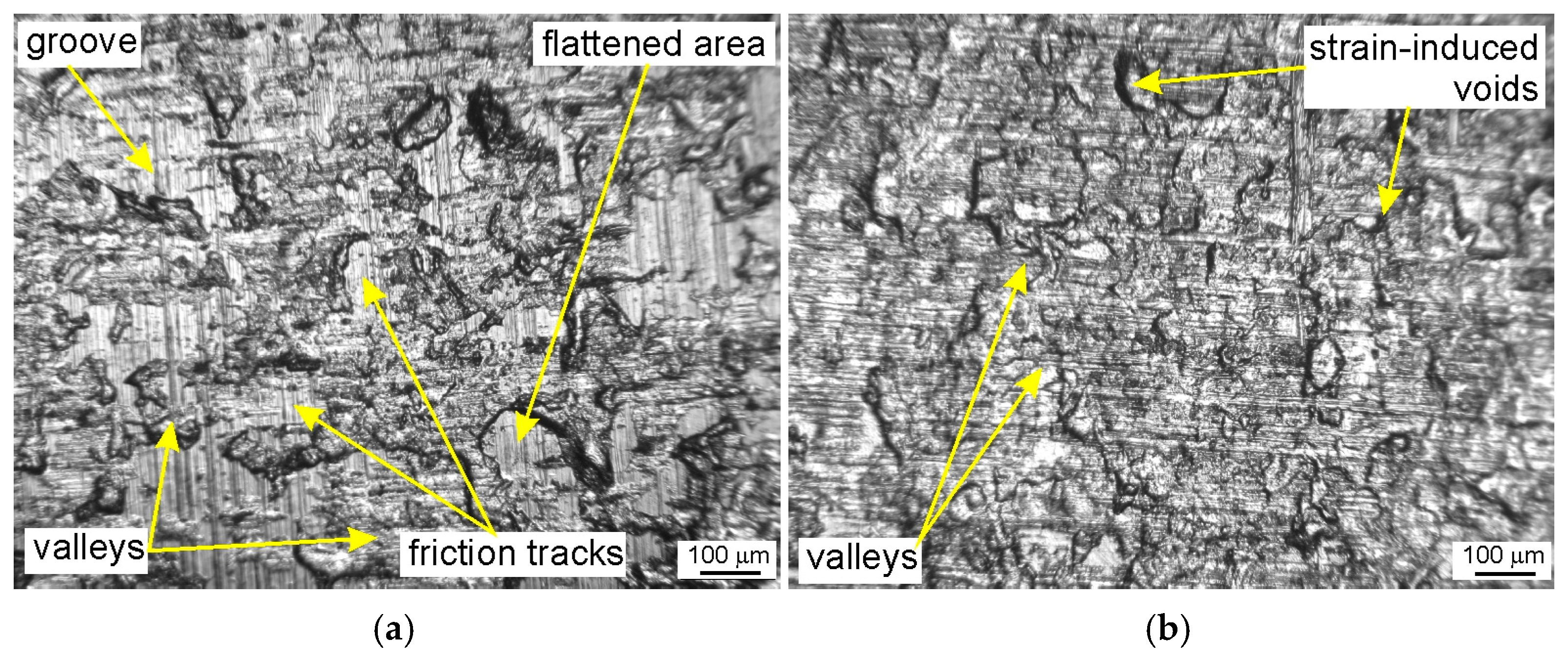 - Balyts’kyi, O.I.; Kolesnikov, V.O.; Kawiak, P. Triboengineering properties of austenitic manganese steels and cast irons under the conditions of sliding friction. Mater. Sci. 2005, 41, 624–630. [Google Scholar] [CrossRef]