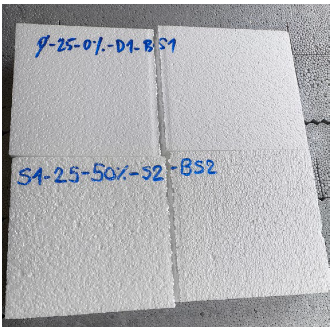 25]. These initial findings, presented in the form of conference papers, provided a general overview of the effects of recycled EPS on selected material characteristics. The present work expands significantly on those contributions.