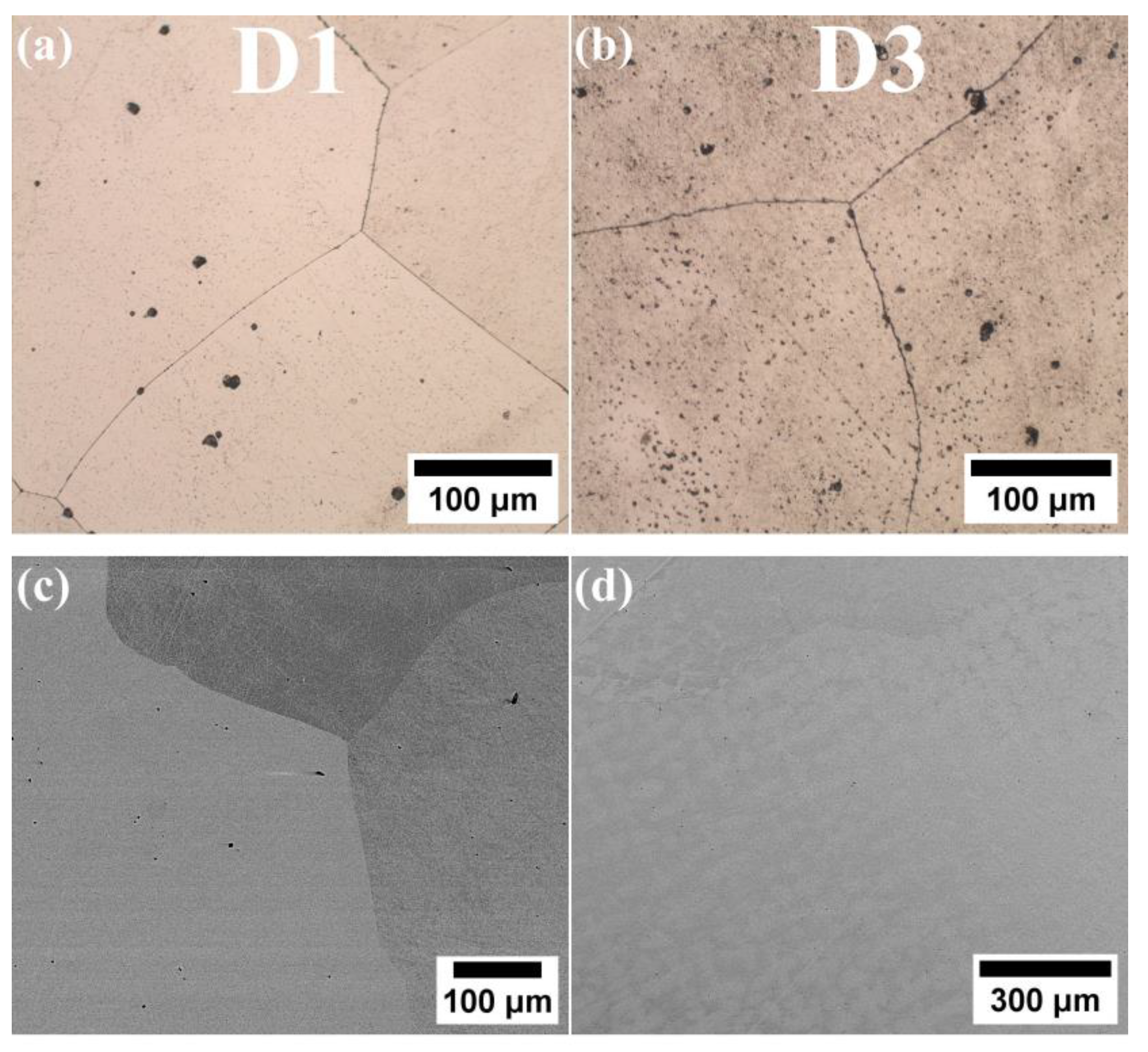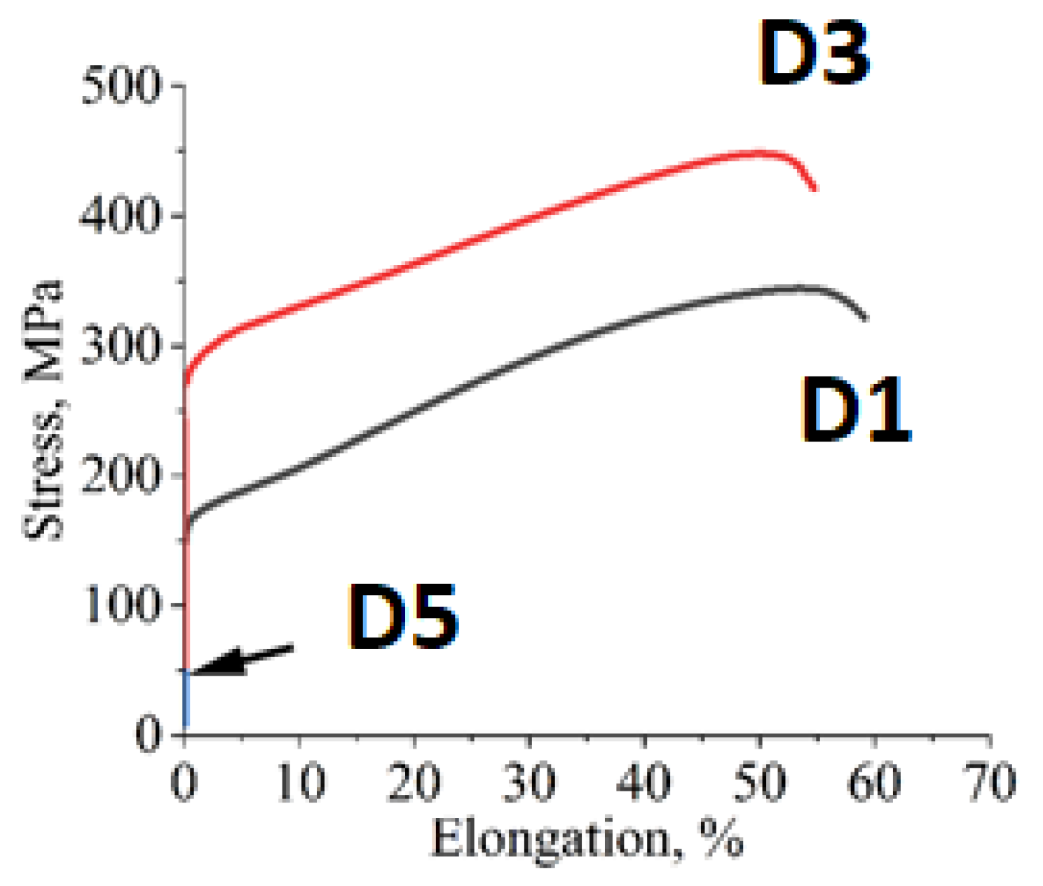 3.2. Mechanical Properties of the High Entropy D1, D3 and D6 Alloys at Room Temperature