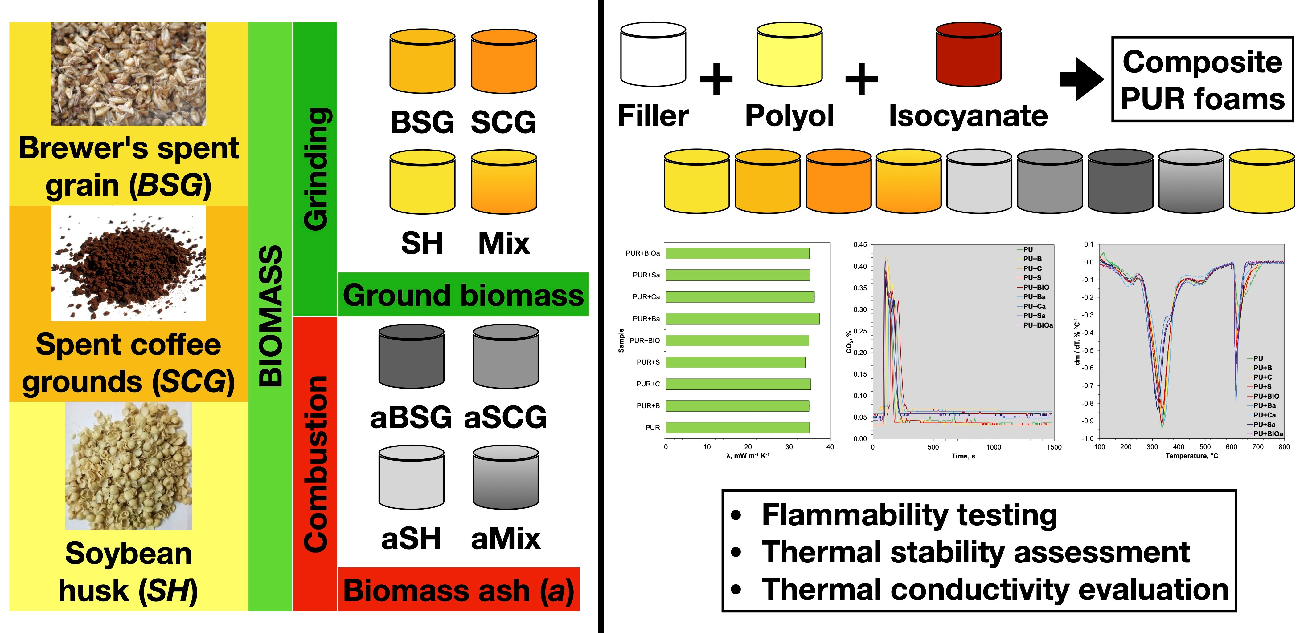 Flammability and Thermal Properties of Rigid Polyurethane Foams Modified with Waste Biomass and Ash