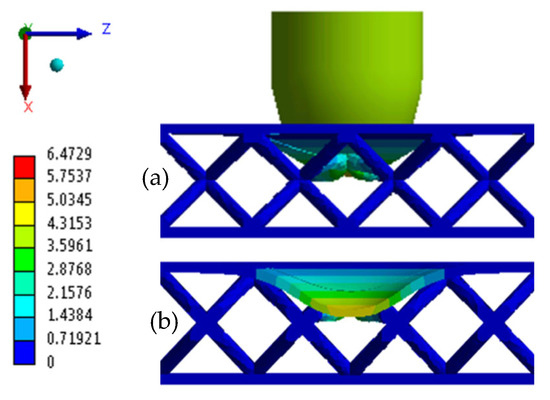 Total Displacement BCC1.5. (a) Lateral view; (b) section view.
