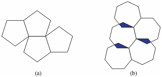Since non-crystallographic shapes cannot cover a surface completely, Penrose [19] used two types of rhombi to achieve full coverage (Figure 4). He obtained a 2D quasiperiodic structure by applying special matching rules.