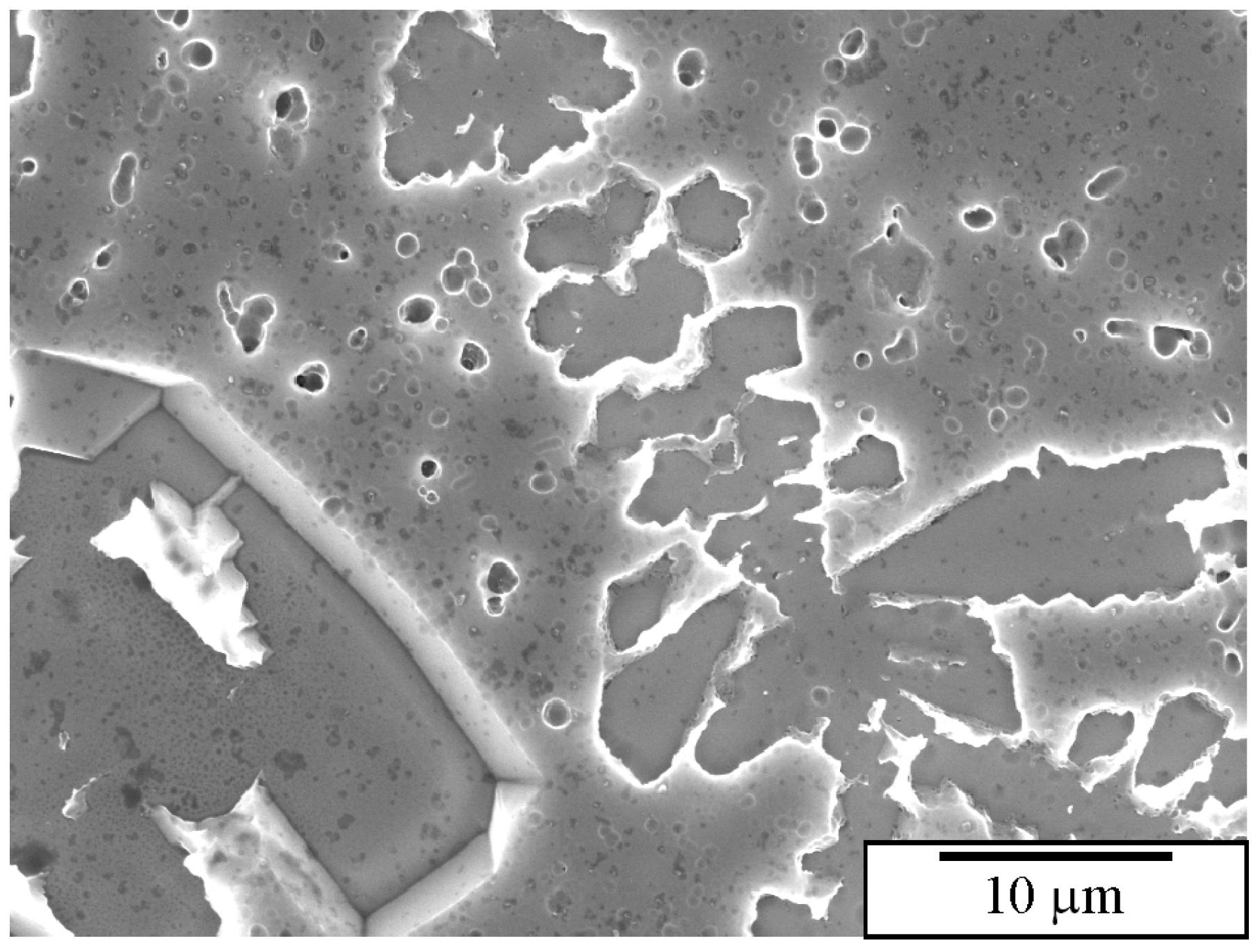 | 250 mL methyl alcohol solution with 2 wt.% KI, electrolytic etching, 2–5 V, 0.1–0.3 A | Al6Mn (14.3 at.% Mn) and Al17Mn (5.6 at.% Mn) | Preservation of quasicrystalline particles | [185] |