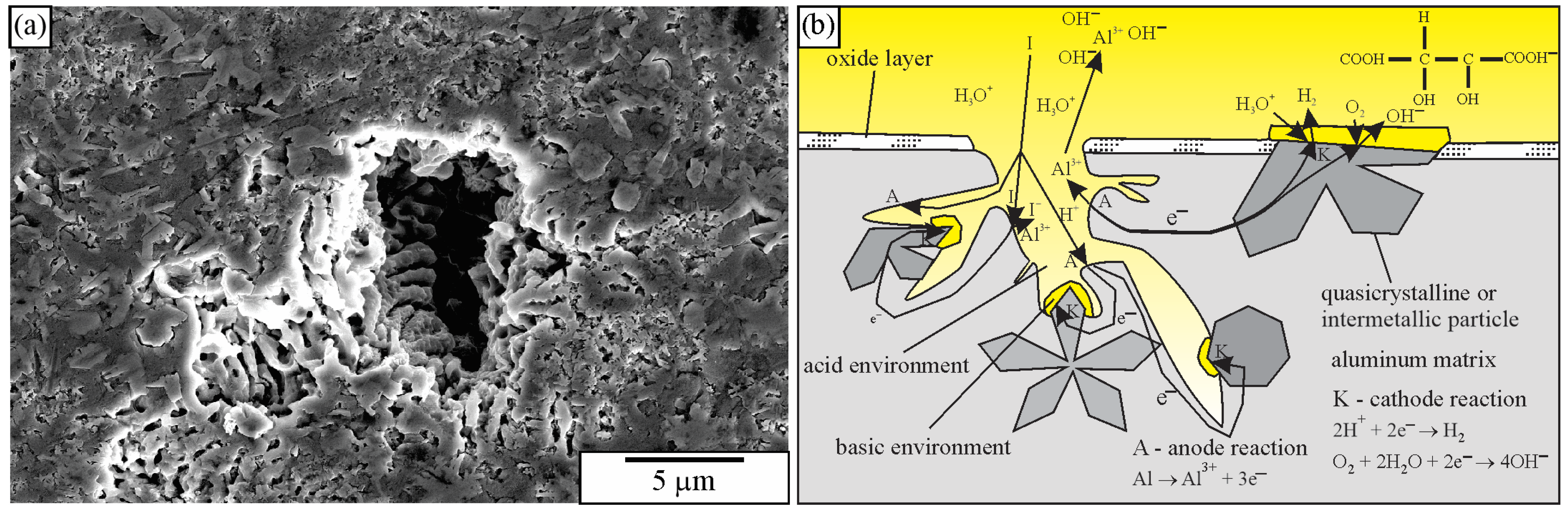 - Milenkovic, S.; Dalbert, V.; Marinkovic, R.; Hassel, A.W. Selective matrix dissolution in an Al–Si eutectic. Corros. Sci. 2009, 51, 1490. [Google Scholar] [CrossRef]