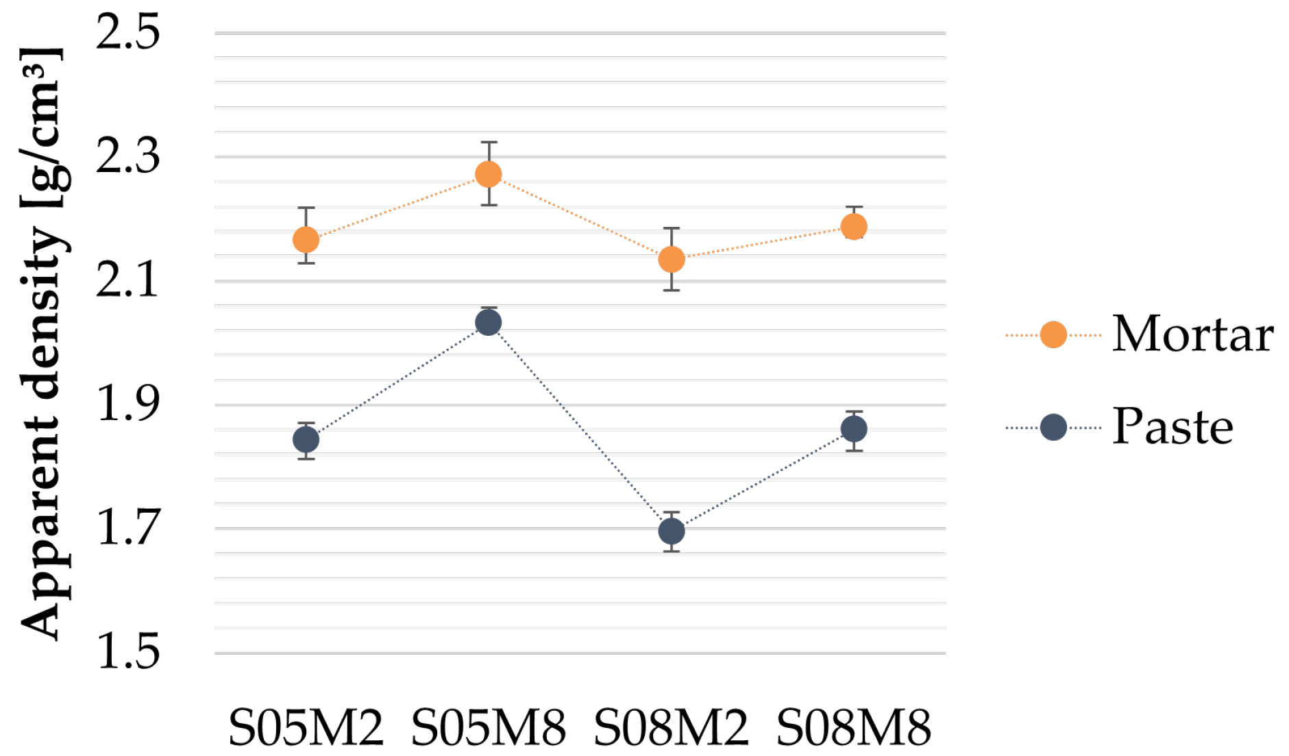 Composition | Alkaline Concentration [mol/L] | S/B [-] | W/B [-] | Alkali Content [%] | Paste/Sand [-] |