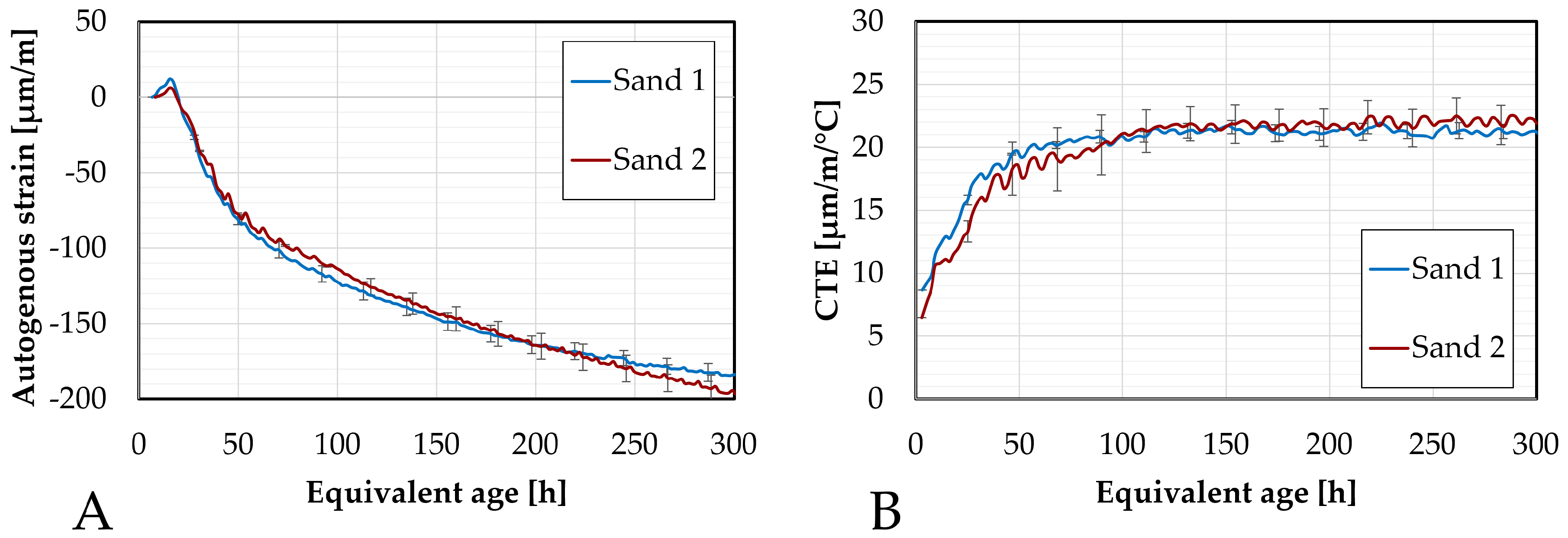 Differences between the two sands in terms of: (A). autogenous strain and of (B). CTE.