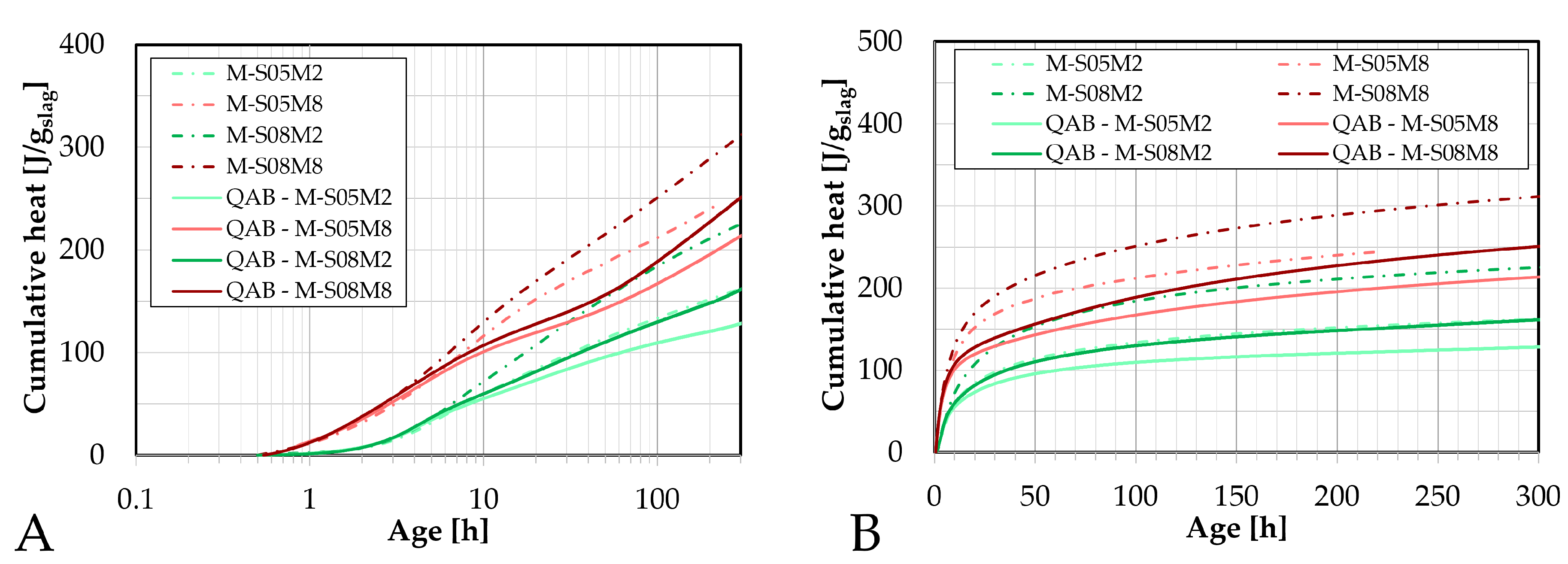 Results of isothermal calorimetry on mortar scale compared to the paste scale: (A). heat flow, (B). cumulative heat.