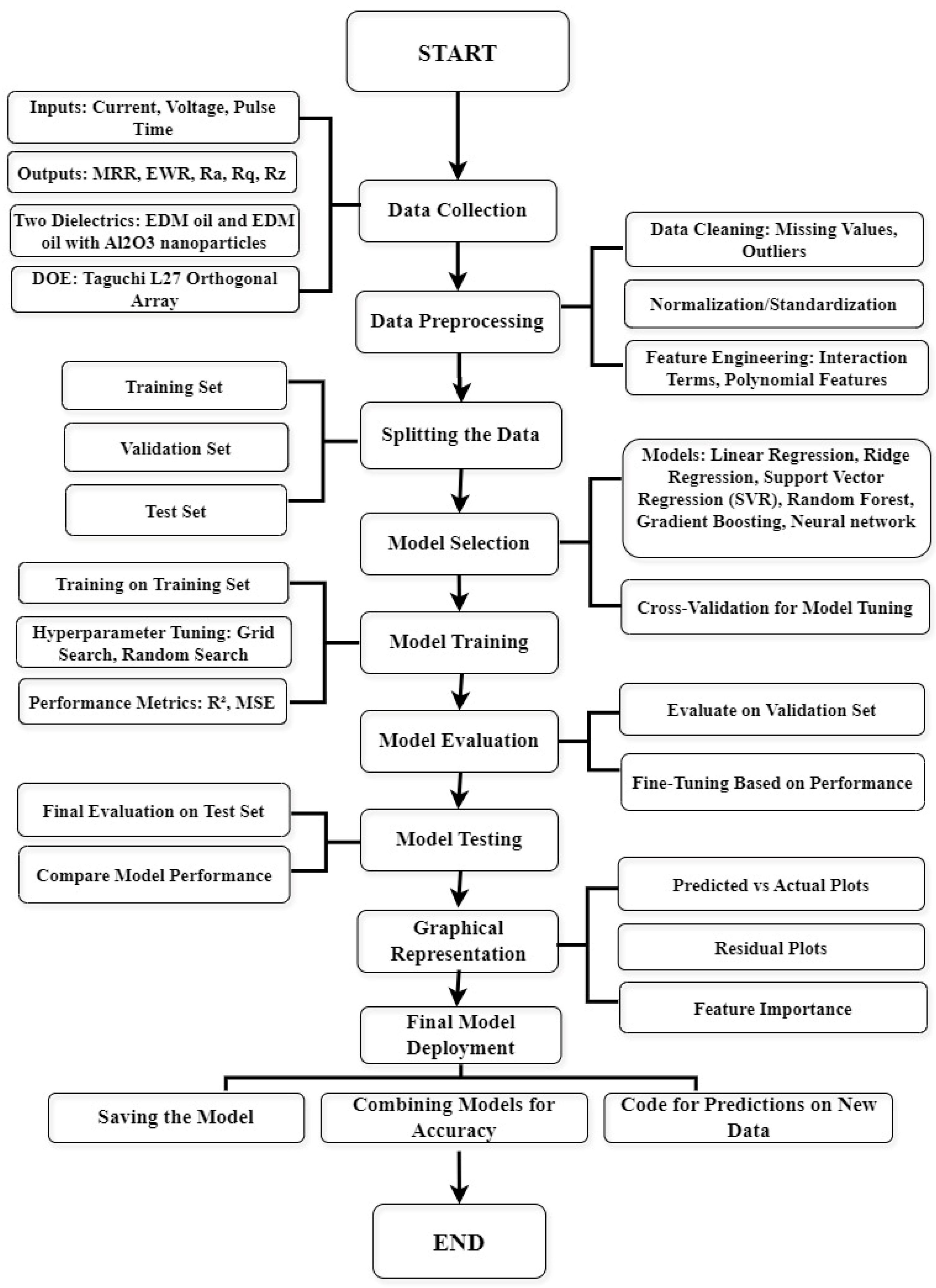 - Predictive accuracy: Among the six machine learning models tested, Neural Networks and Gradient Boosting consistently delivered the highest prediction accuracy for MRR and surface finish, even with limited experimental data. This demonstrates the potential of combining data-driven approaches with EDM research.