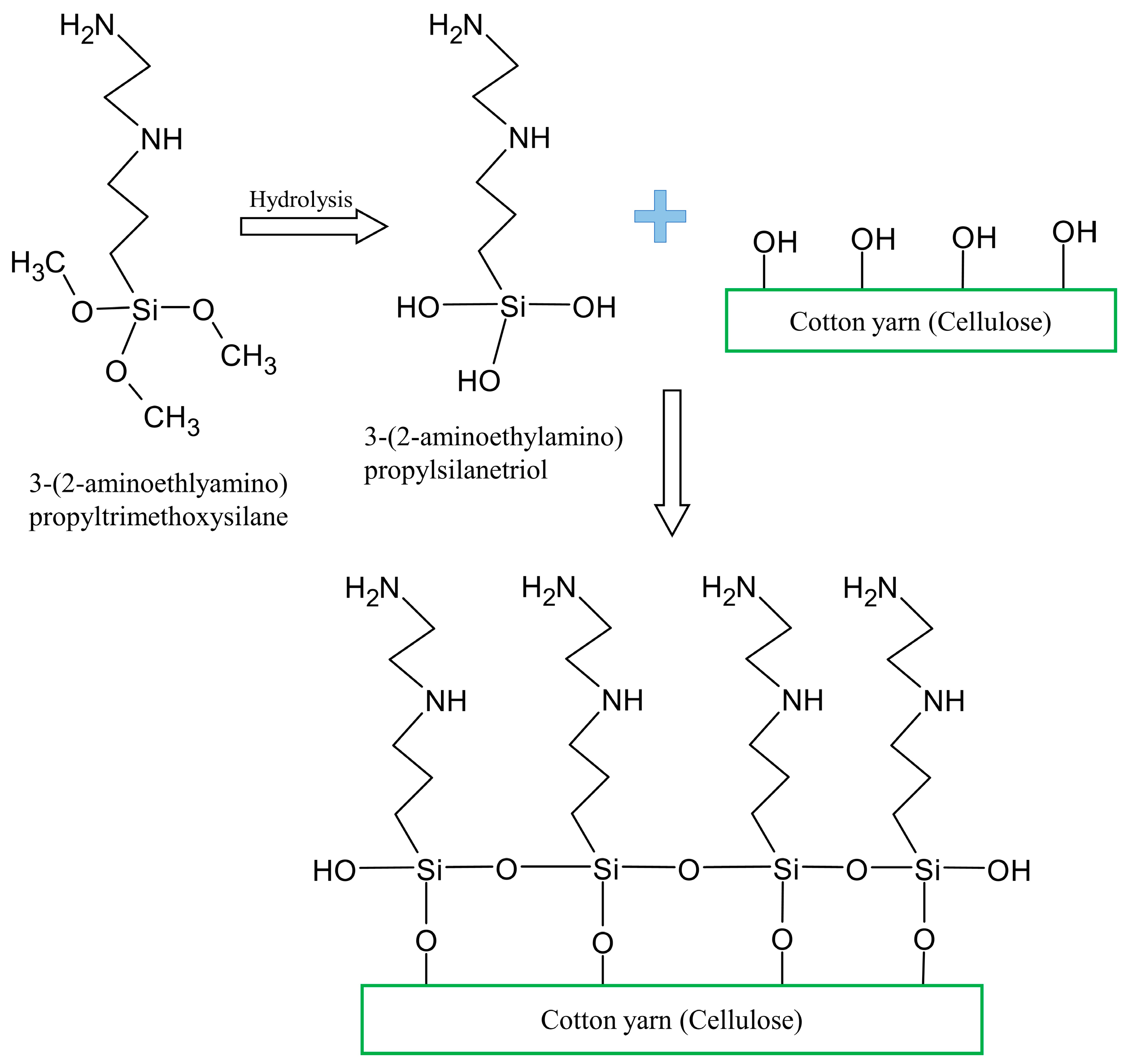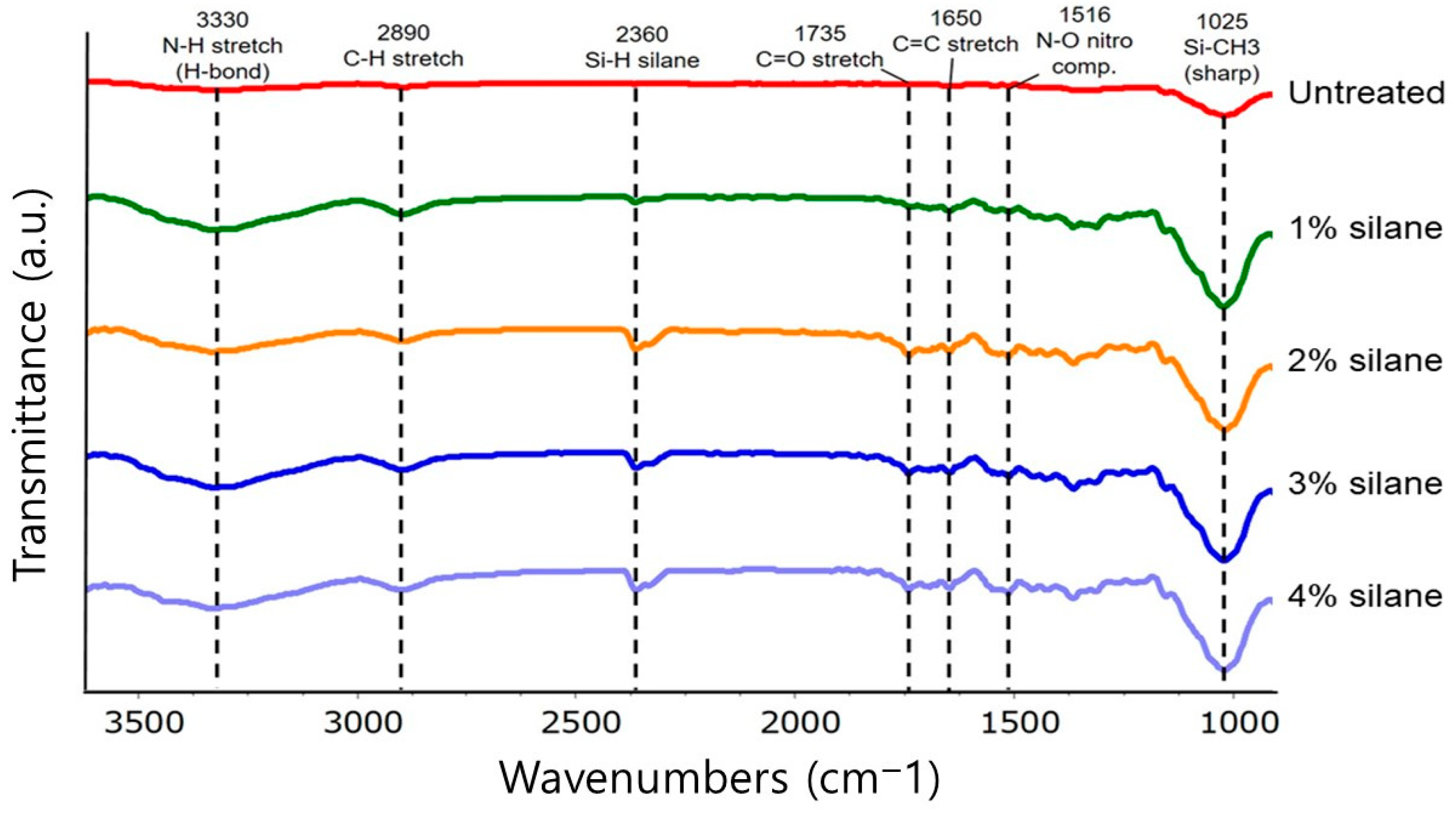 3.1.1. Effect of Silane Surface Treatment on FTIR Spectra of Cotton Yarn