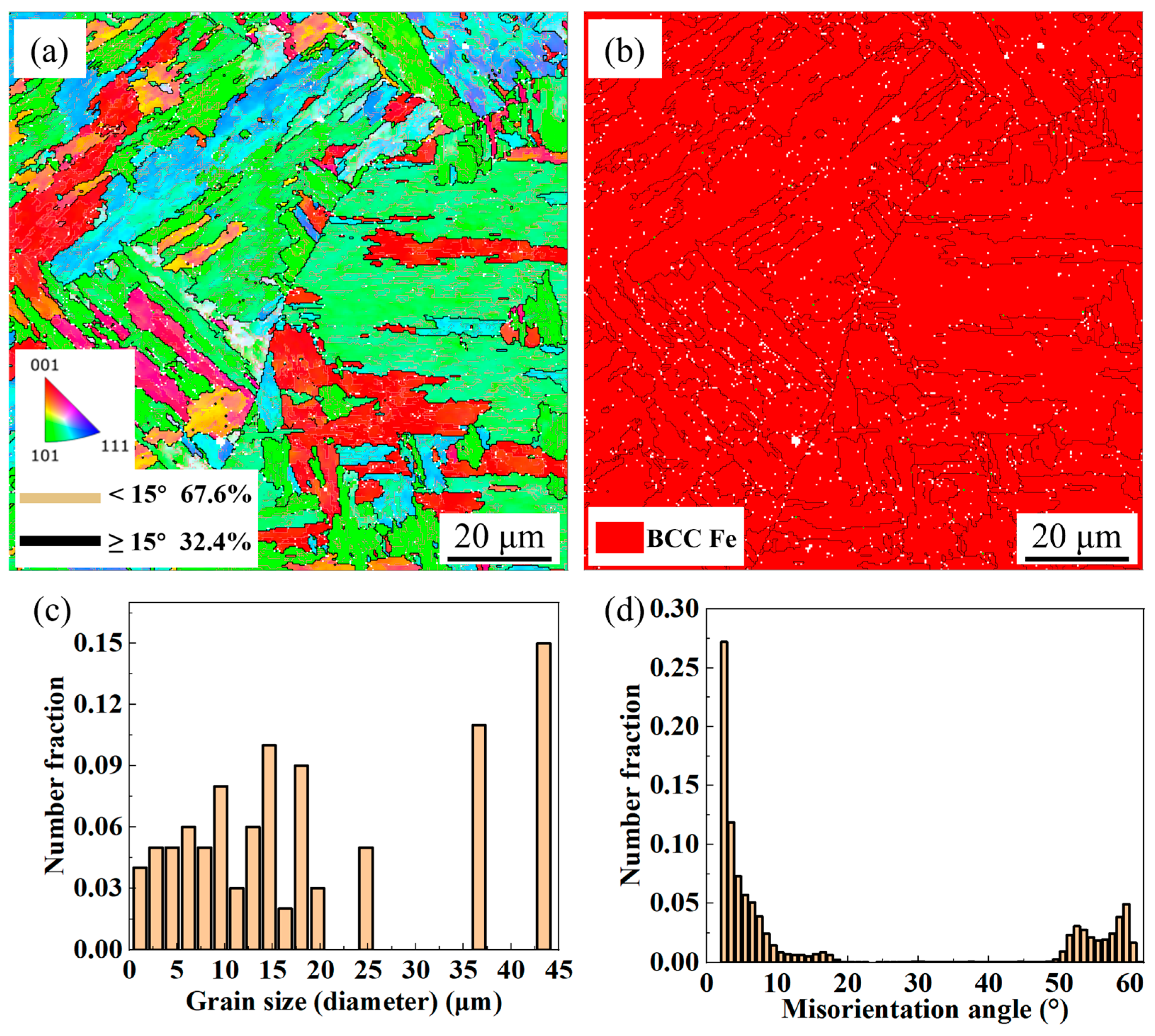 - Guo, W.; Wang, L.; Su, L.; Ma, X.; Wang, J.; Hou, S.; He, B. Microstructure evolution and mechanical properties of Q690D steel repaired by wire based laser directed energy deposition. Virtual Phys. Prototyp. 2024, 19, e2375108. [Google Scholar] [CrossRef]