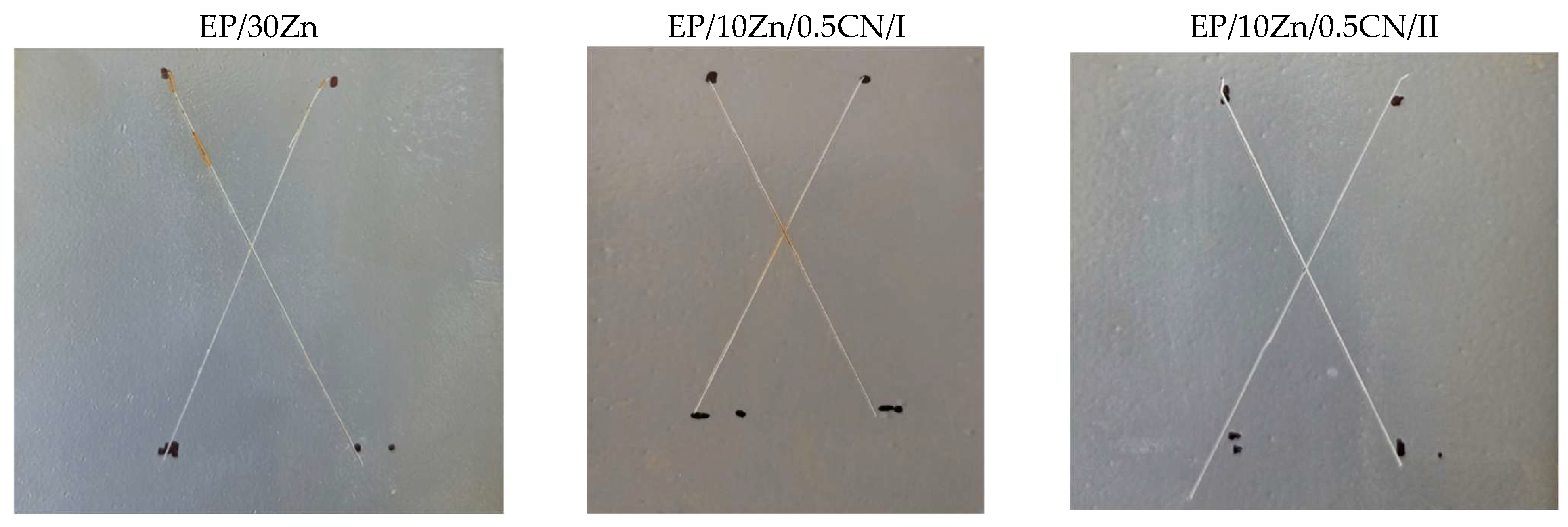 Symbol of Coating | EP/30Zn | EP/10Zn/0.5CN/I | EP/10Zn/0.5CN/II | |