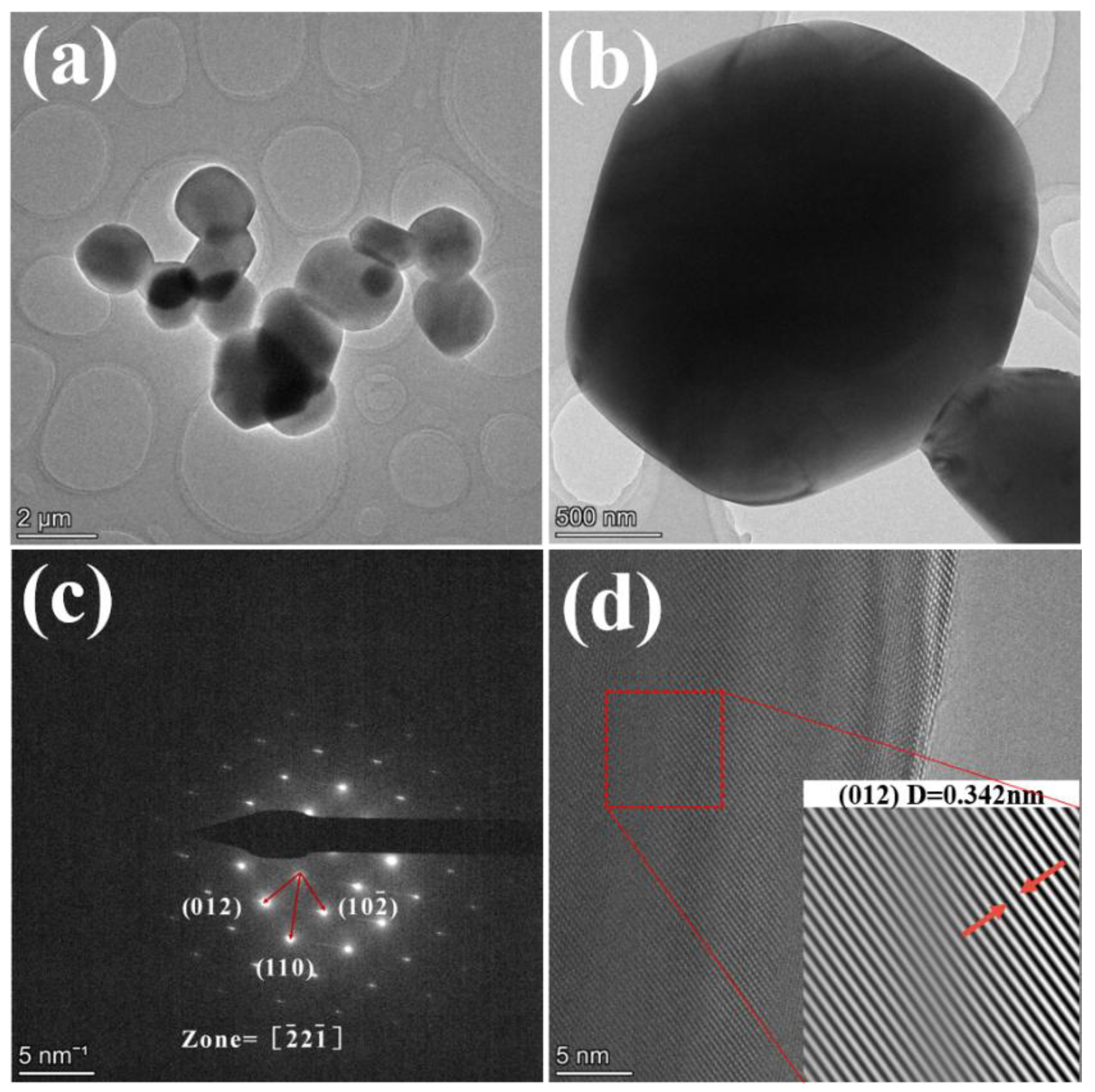 - NH4BF4 serves as an efficient mineralizer that facilitates the formation of α-Al2O3. Under these conditions, the holding time has minimal influence on the final crystal morphology and particle size. Experiments confirmed that within a 1–4 h holding period, the morphology and size of the α-Al2O3 crystals remained largely unchanged, with no significant agglomeration or abnormal grain growth—markedly superior to the control group without NH4BF4. This behavior is attributed to gaseous products from NH4BF4 decomposition, which regulate grain-boundary diffusion by reducing interfacial energy and suppressing Ostwald ripening, thereby decoupling grain growth rate from holding time.