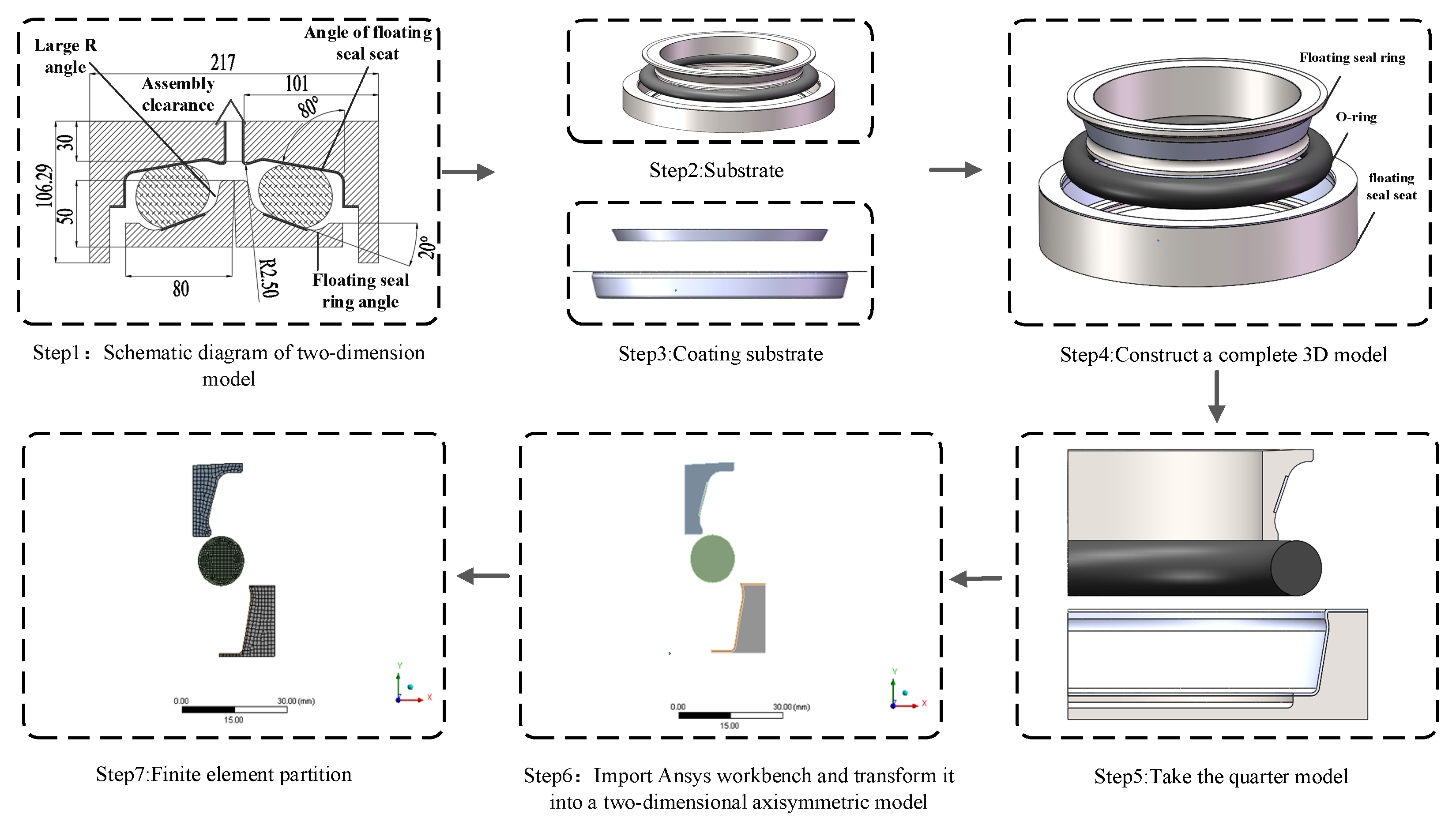 2.2. Finite Element Modeling of the Ceramic-Coated Floating Oil Seal