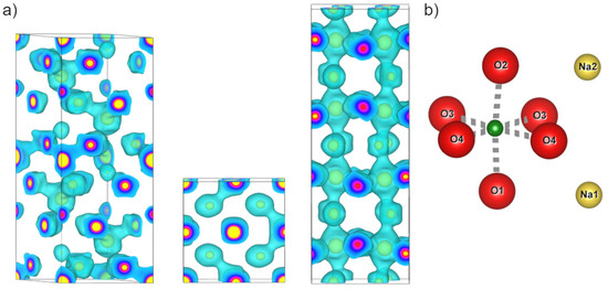 Regarding the control parameters of the MEM calculation (DYSNOMIA 1.0), the structure factor uncertainty, E, was kept between 0.1 and 0.5. Generalized constraint parameter weighting factors were adjusted as needed, using constraints for all materials with used as needed. The weighting factor x, implemented to decrease the noise caused by strong reflections, was varied between 2, as suggested for powder diffraction, and 3, as 4 is suggested for single crystals [27]. A comparison of x = 2 and x = 4 for NN can be found in Figure A1 in the Appendix A. Visualization of ED maps and line profiles, calculations of ED and .cif-related data were performed using VESTA (Version 3.5.8) [28]. Line profiles were defined peak to peak in the ED.