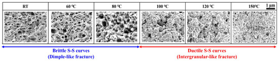 Temperature significantly influences the response of the sintered nano-silver paste. Elevated temperatures enhance ductility, leading to more pronounced deformation under identical stress levels. This is attributed to grain growth and intensified thermally activated plastic deformation [33], as shown in Figure 10. Accordingly, Figure 7a shows that the fractional order increases with temperature, validating its role in reflecting thermal softening. Furthermore, the fractional order remains bounded between 0 and 1, consistent with fractional-model constraints. Although the elastic modulus and relaxation time are treated as constants in the model for a given condition, they exhibit temperature dependence: both decrease as the temperature rises, aligning with classical viscoelastic theory.