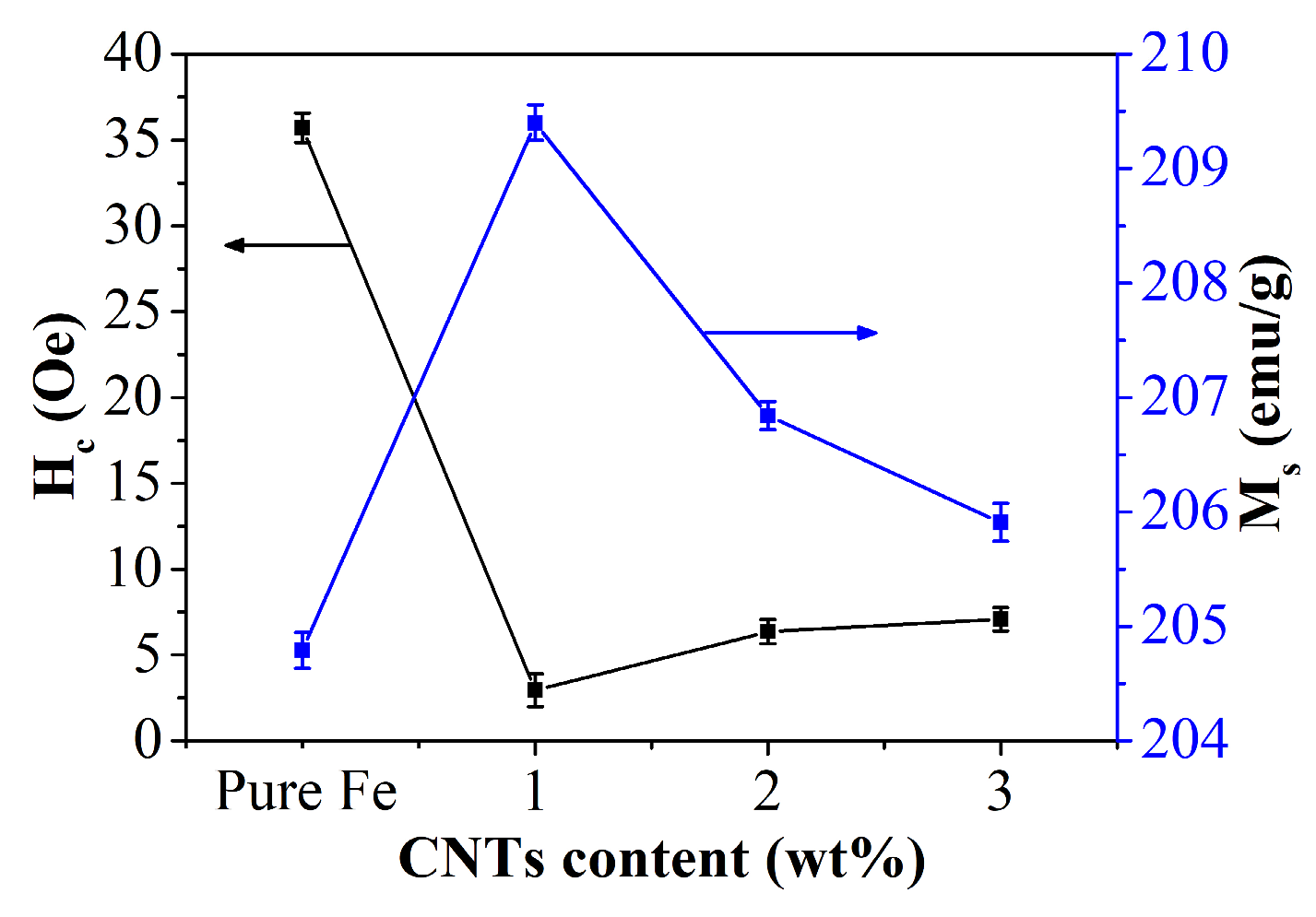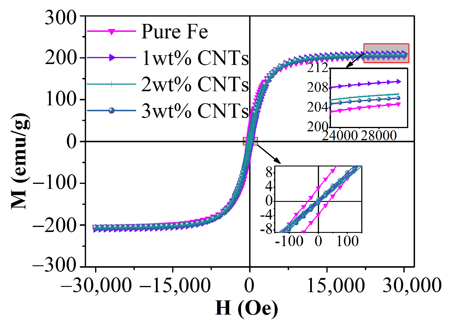 16]. Consequently, further investigations into the structure and magnetic properties of carbon nanotube-reinforced iron-based composites are warranted.