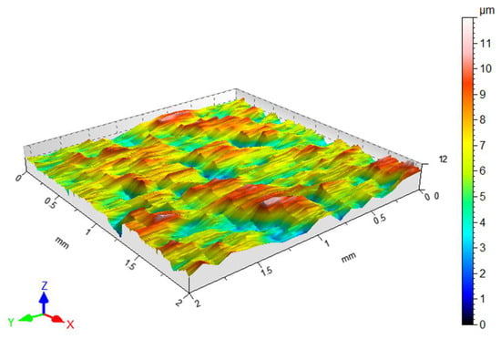 The average surface roughness Sa for the as-received sheet metal is Sa = 1.25 μm and a view of the sheet’s surface topography is shown in Figure 3.